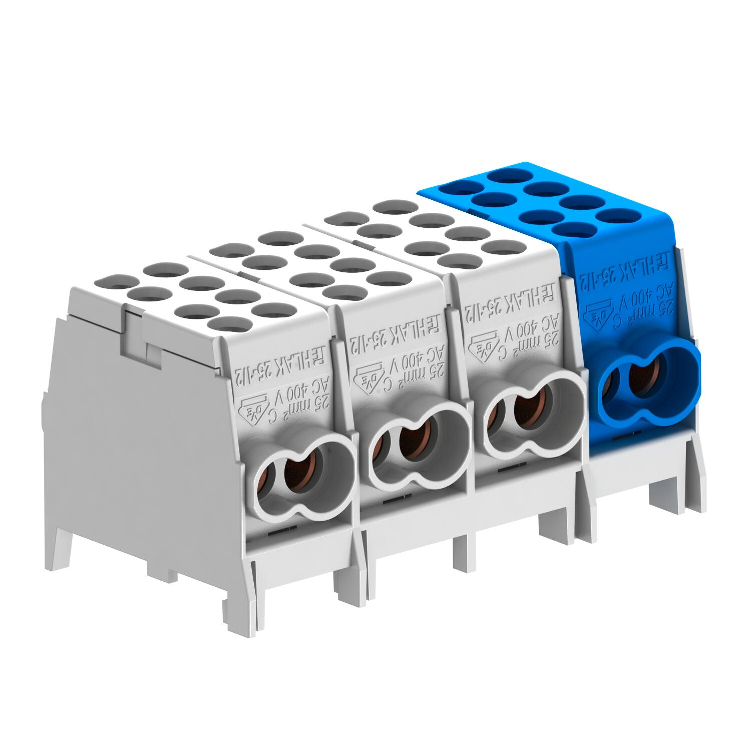 Descrição do produtoTerminal de derivação da linha principal de 4 polos, secções transversais de conexão do condutor de 2 x 16 mm² + 2 x 25 mm² por polo. Com 2 parafusos por ponto de aperto para pressão de contacto segura. Fixação rápida de alta resistência em chapa de aço galvanizada para fácil montagem em calhas DIN.