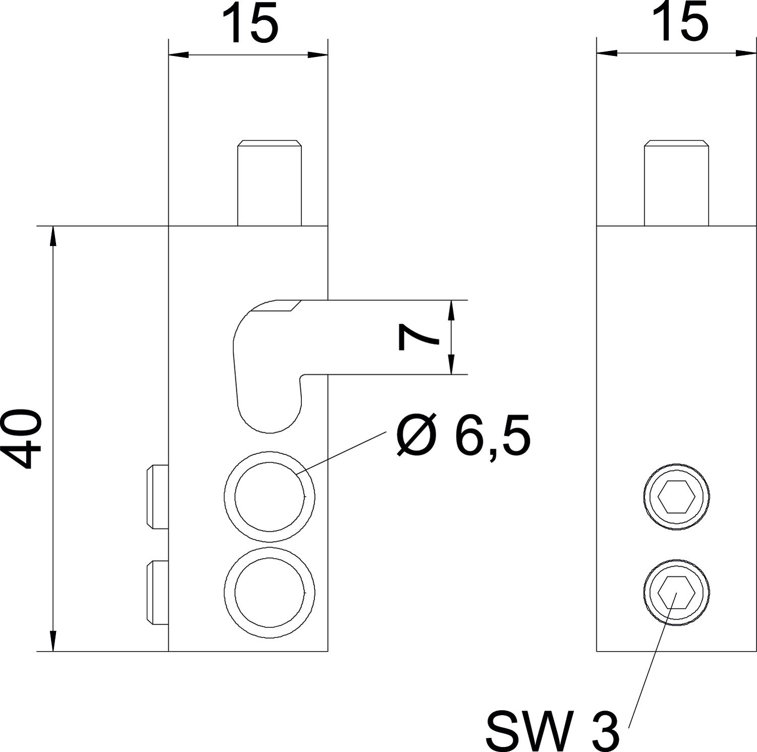 Adequado para Cabo de terras Altura 40 mm Comprimento 15 mm Cor latão Dimensão 25mm² Largura 15 mm Material Latão Medida B 7 mm Medida D 6,5 mm Medida H 40 mm Secção 25 mm² Versão borne de ligação para cabo condutor Simples - Todos os tipos