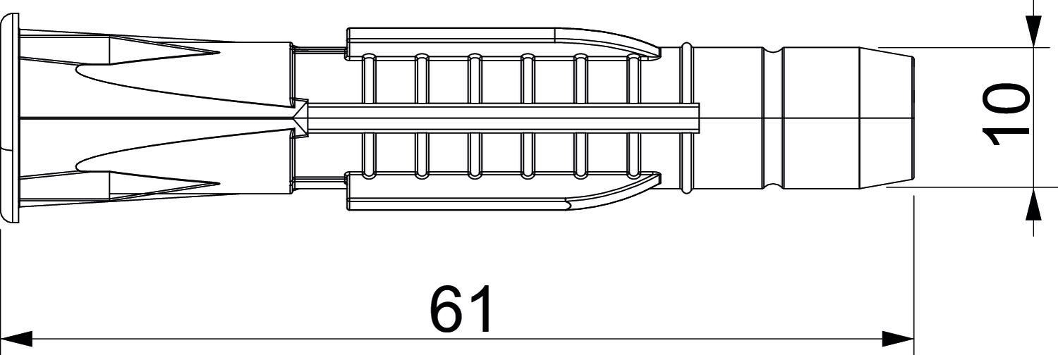 Adequado para fixação com abraçadeira de fivela não Adequado para parafuso sextavado para madeira sim Com parafusos não Cor cinzento claro Diâmetro 10 mm Diâmetro de perfuração mín. 10 mm Dimensão 10x61 Material Poliamida Medida D 10 mm Medida L 61 mm Parafusos para madeira 7-8 Versão Bucha universal - Todos os tipos