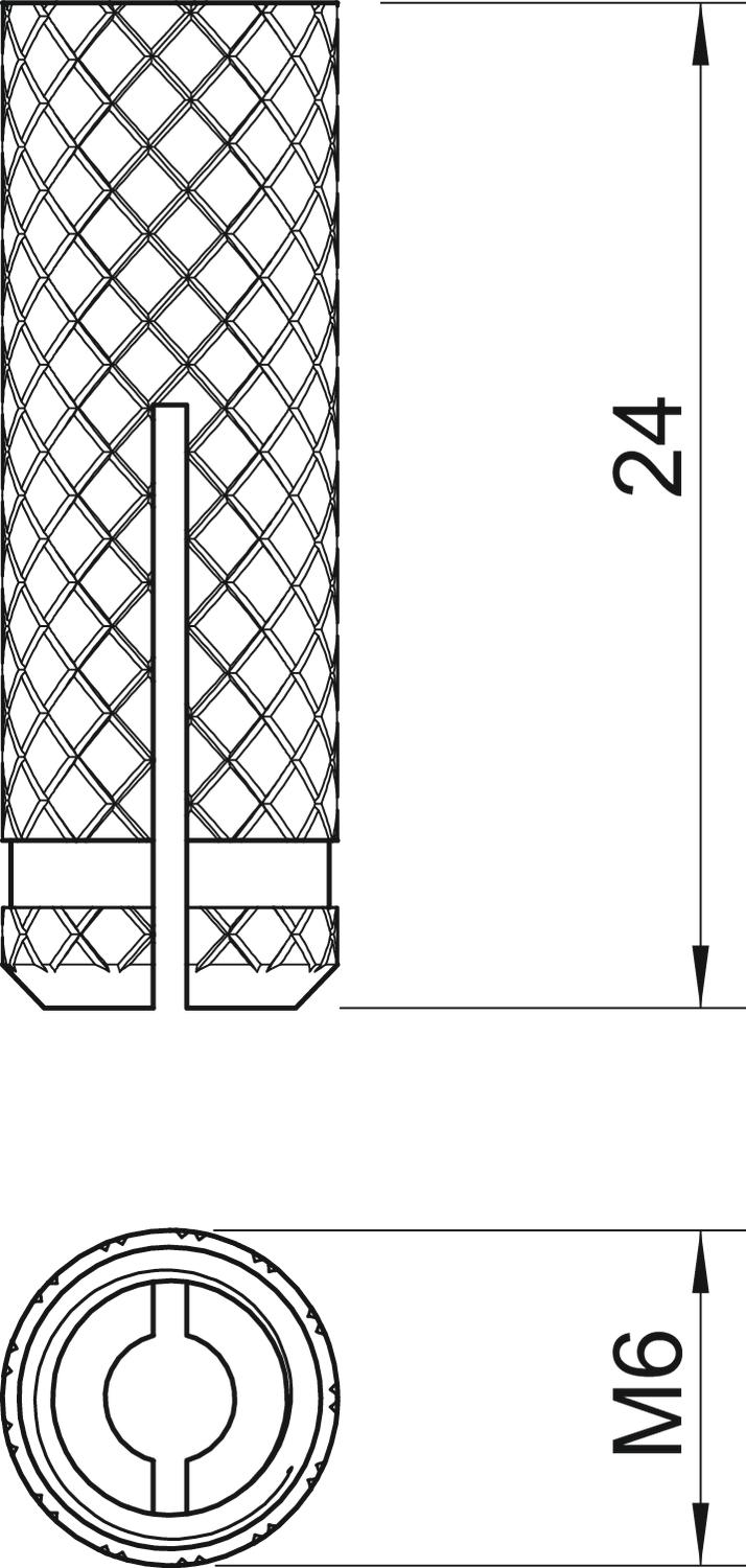 Adequado para fixação com abraçadeira de fivela não Adequado para parafuso sextavado para madeira não Com parafusos não Comprimento 24 mm Diâmetro 7,5 mm Diâmetro de perfuração mín. 8 mm Dimensão M6 Geeignet für Baustoff Betão, Tijolo maciço, Madeira Material Latão Medida D 7,5 mm Medida L 24 mm Profundidade do furo 32 mm Resistência à tração 6000 N Rosca M6 Versão Bucha - Todos os tipos