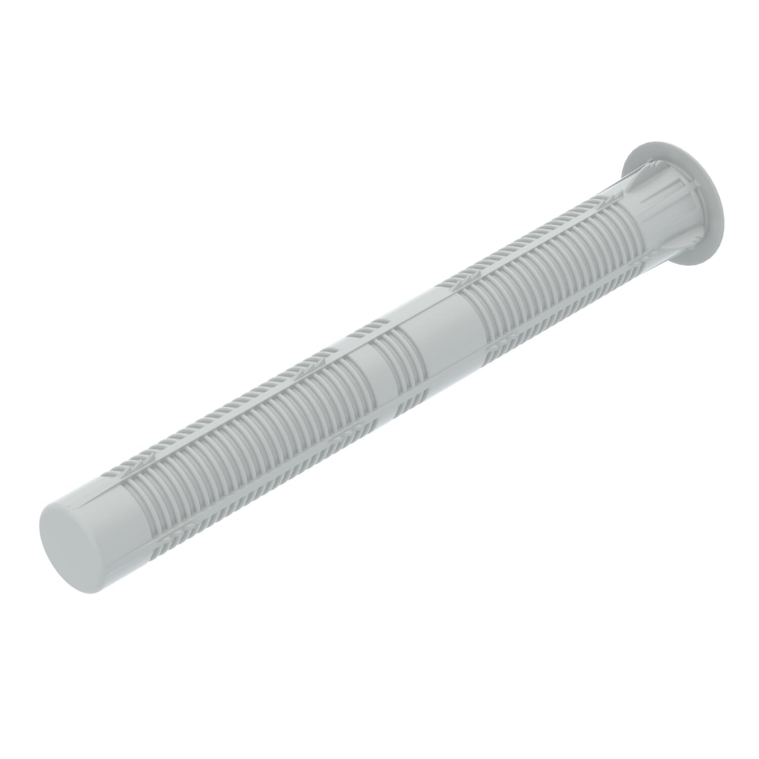 A bucha perfurada de plástico VM-SH 20x85 é montada com parafuso de ancoragem VMU-A 12x155 ou a perno roscado fêmea VMU-IG M8x80 e VMU-IG M10x80.