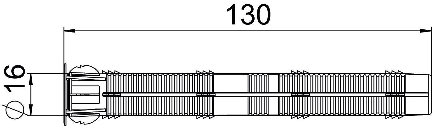 A bucha perfurada de plástico VM-SH 16x130 é montada com parafuso de ancoragem VMU-A 10x150.