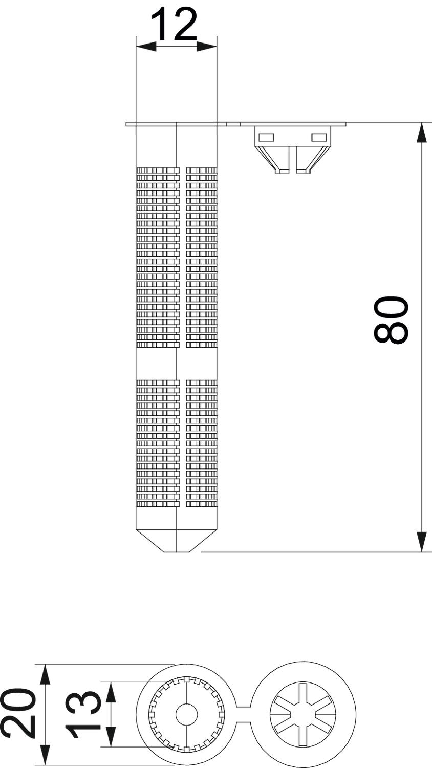 A bucha perfurada de plástico VM-SH 12x80 é montada com parafuso de ancoragem VMU-A 8x110.