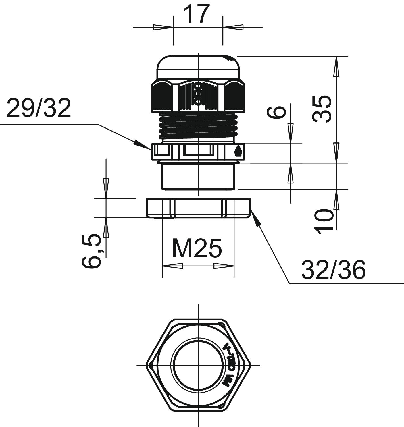 Área de vedação D mín. 9 mm Binário instável 5 Nm Bucim para cabos planos não Bucim separável não Capacidade de vedação D máx. 17 mm Com porca sim Comprimento da rosca 10 mm Cor cor de laranja; RAL 2003 Dimensão M25 Gama de temperaturas de aplicação máx. 65 °C Gama de temperaturas de aplicação mín. -20 °C Grau de proteção IP68 Largura da chave 29 Largura da chave 1 29 mm Largura da chave 2 32 mm Livre de halogéneos sim Material Poliamida Medida E 32 mm Medida E1 (mm) 32 mm Medida E2 36 mm Medida G M25 x 1,5 mm Medida L máx. 35 mm Medida L mín. 26 mm Medida L1 10 mm Medida L2 6 mm Medida L3 6,5 mm para zona Ex com gás sem para zona Ex com poeira sem Para zonas potencialmente explosivas sem Passa cabos múltiplo não Passo de rosca 1,5 mm Pegada de CO2 (GWP) do berço ao portão 0,0783 kg CO2e / 1 Peça Possibilidade de alívio de tensão sim Proteção contra flexão não Reforçado a fibra de vidro não resistência ao fio incandescente conforme a VDE 0471/DIN 695 Parte 2-1, temperatura de ensaio 650 °C Resistente não Rosca M25 x 1,5 Tipo de rosca métrico - Todos os tipos