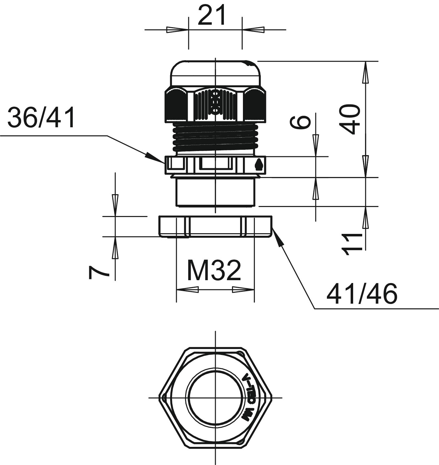 Área de vedação D mín. 15 mm Binário instável 7,5 Nm Bucim para cabos planos não Bucim separável não Capacidade de vedação D máx. 21 mm Com porca sim Comprimento da rosca 11 mm Cor cor de laranja; RAL 2003 Dimensão M32 Gama de temperaturas de aplicação máx. 65 °C Gama de temperaturas de aplicação mín. -20 °C Grau de proteção IP68 Largura da chave 36 Largura da chave 1 36 mm Largura da chave 2 41 mm Livre de halogéneos sim Material Poliamida Medida E 41 mm Medida E1 (mm) 41 mm Medida E2 46 mm Medida G M32 x 1,5 mm Medida L máx. 40 mm Medida L mín. 29 mm Medida L1 11 mm Medida L2 6 mm Medida L3 7 mm para zona Ex com gás sem para zona Ex com poeira sem Para zonas potencialmente explosivas sem Passa cabos múltiplo não Passo de rosca 1,5 mm Pegada de CO2 (GWP) do berço ao portão 0,1356 kg CO2e / 1 Peça Possibilidade de alívio de tensão sim Proteção contra flexão não Reforçado a fibra de vidro não resistência ao fio incandescente conforme a VDE 0471/DIN 695 Parte 2-1, temperatura de ensaio 650 °C Resistente não Rosca M32 x 1,5 Tipo de rosca métrico - Todos os tipos