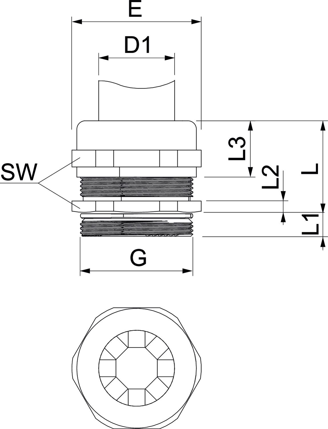 Altura 41 mm Área de vedação D mín. 19 mm Bucim para cabos planos não Capacidade de vedação D máx. 27 mm Com porca não Comprimento 43 mm Comprimento da rosca 8 mm Dimensão M40 Gama de temperaturas de aplicação máx. 100 °C Gama de temperaturas de aplicação mín. -20 °C Grau de proteção IP68 Largura 46 mm Largura da chave 43 Livre de halogéneos não Material Latão Medida D1 19 mm Medida E 46 mm Medida G M40x1,5 mm Medida L 33 mm Medida L1 8 mm Medida L2 4,5 mm Medida L3 16,4 mm Para zonas potencialmente explosivas sem Passa cabos múltiplo não Pegada de CO2 (GWP) do berço ao portão 0,4394 kg CO2e / 1 Peça Possibilidade de alívio de tensão sim Proteção contra flexão não Reforçado a fibra de vidro não Resistente não Rosca M40 x 1,5 Superfície niquelado Tipo de vedação Anel de vedação Versão reta - Todos os tipos
