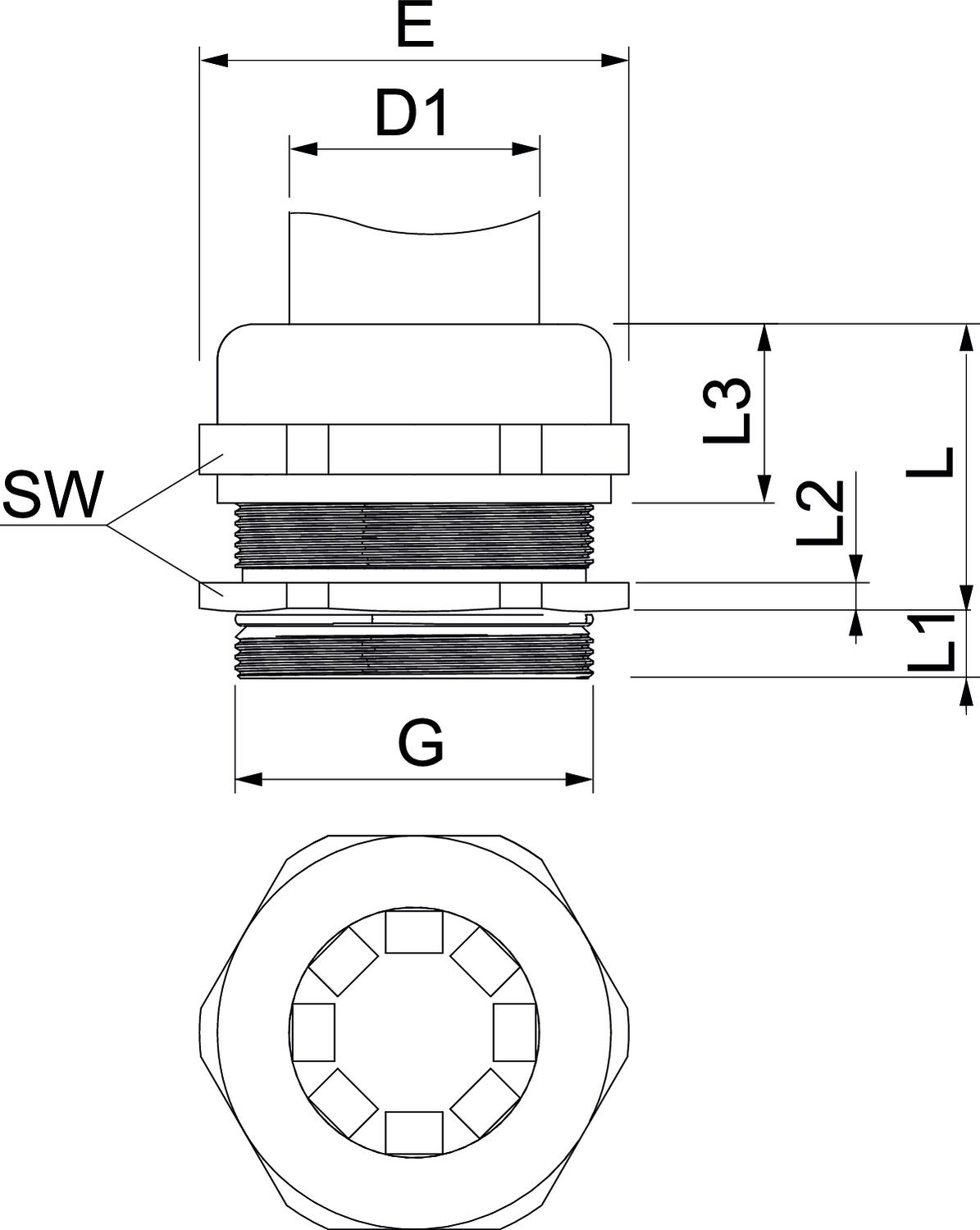 Altura 49,5 mm Área de vedação D mín. 24 mm Bucim para cabos planos não Capacidade de vedação D máx. 35 mm Com porca não Comprimento 55 mm Comprimento da rosca 9 mm Dimensão M50 Gama de temperaturas de aplicação máx. 100 °C Gama de temperaturas de aplicação mín. -20 °C Grau de proteção IP68 Largura 60 mm Largura da chave 55 Livre de halogéneos não Material Latão Medida D1 24 mm Medida E 60 mm Medida G M50x1,5 mm Medida L 40,5 mm Medida L1 9 mm Medida L2 4,5 mm Medida L3 21 mm Para zonas potencialmente explosivas sem Passa cabos múltiplo não Pegada de CO2 (GWP) do berço ao portão 0,408 kg CO2e / 1 Peça Possibilidade de alívio de tensão sim Proteção contra flexão não Reforçado a fibra de vidro não Resistente não Rosca M50 x 1,5 Superfície niquelado Tipo de vedação Anel de vedação Versão reta - Todos os tipos