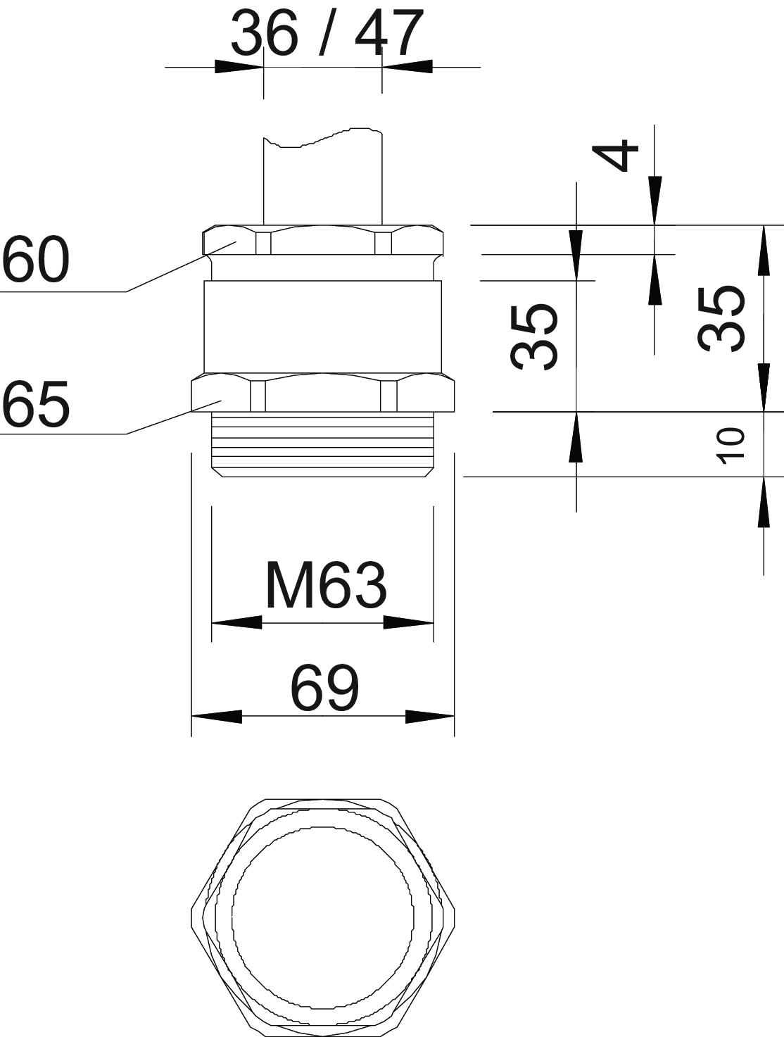 Área de vedação D mín. 36 mm Bucim para cabos planos não Capacidade de vedação D máx. 47 mm Com porca não Comprimento da rosca 10 mm Dimensão M63 Grau de proteção IP65 Largura da chave 1 65 mm Largura da chave 2 60 mm Livre de halogéneos não Material Latão Medida E 69 mm Medida L 35 mm Medida L máx. 35 mm Medida L1 10 mm Medida L2 35 mm Medida L3 4 mm Para zonas potencialmente explosivas sem Passa cabos múltiplo não Pegada de CO2 (GWP) do berço ao portão 0,9694 kg CO2e / 1 Peça Possibilidade de alívio de tensão não Potegido contra explosões não Proteção contra flexão não Reforçado a fibra de vidro não Resistente não Rosca M63 x 1,5 Superfície niquelado Tipo de rosca métrico Tipo de vedação anel de vedação recortável - Todos os tipos