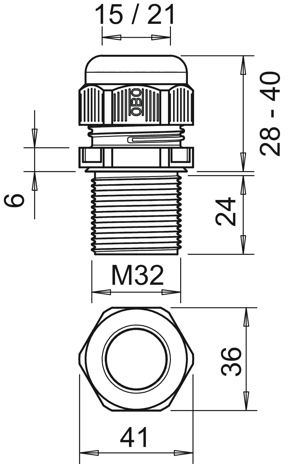 Área de vedação D mín. 15 mm Binário instável 7,5 Nm Bucim para cabos planos não Bucim separável não Capacidade de vedação D máx. 21 mm Com porca não Comprimento da rosca 24 mm Cor Preto Dimensão M32 Gama de temperaturas de aplicação máx. 65 °C Gama de temperaturas de aplicação mín. -20 °C Grau de proteção IP68 Largura da chave 36 Livre de halogéneos sim Material Poliamida Medida E 41 mm Medida L máx. 40 mm Medida L mín. 28 mm Medida L1 24 mm Medida L2 6 mm para zona Ex com gás sem para zona Ex com poeira sem Para zonas potencialmente explosivas sem Passa cabos múltiplo não Passo de rosca 1,8 mm Pegada de CO2 (GWP) do berço ao portão 0,1257 kg CO2e / 1 Peça Possibilidade de alívio de tensão sim Potegido contra explosões não Proteção contra flexão não Reforçado a fibra de vidro não resistência ao fio incandescente conforme a VDE 0471/DIN 695 Parte 2-1, temperatura de ensaio 650 °C Resistente não Rosca M32 x 1,5 Sextavado Largura entre cantos 41 mm Tamanho nominal da rosca 32 Tipo de rosca métrico Tipo de vedação Anel de vedação Versão reta - Todos os tipos