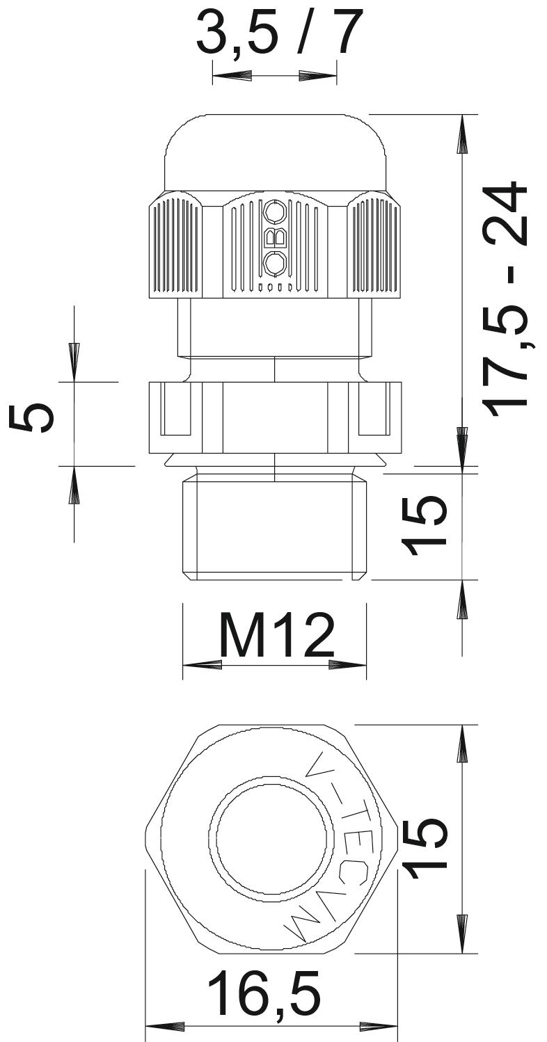 Área de vedação D mín. 3 mm Bucim para cabos planos não Capacidade de vedação D máx. 6 mm Com porca não Comprimento da rosca 10 mm Dimensão M12 Gama de temperaturas de aplicação máx. 100 °C Gama de temperaturas de aplicação mín. -20 °C Grau de proteção IP68 Largura da chave 14 Livre de halogéneos não Material Latão Medida E 15,5 mm Medida L máx. 20 mm Medida L1 10 mm Medida L2 3 mm Medida L3 11,5 mm Para zonas potencialmente explosivas sem Passa cabos múltiplo não Pegada de CO2 (GWP) do berço ao portão 0,0335 kg CO2e / 1 Peça Possibilidade de alívio de tensão sim Potegido contra explosões não Proteção contra flexão não Reforçado a fibra de vidro não Resistente não Rosca M12 x 1,5 Superfície niquelado Tipo de rosca métrico Tipo de vedação Anel de vedação Versão reta - Todos os tipos