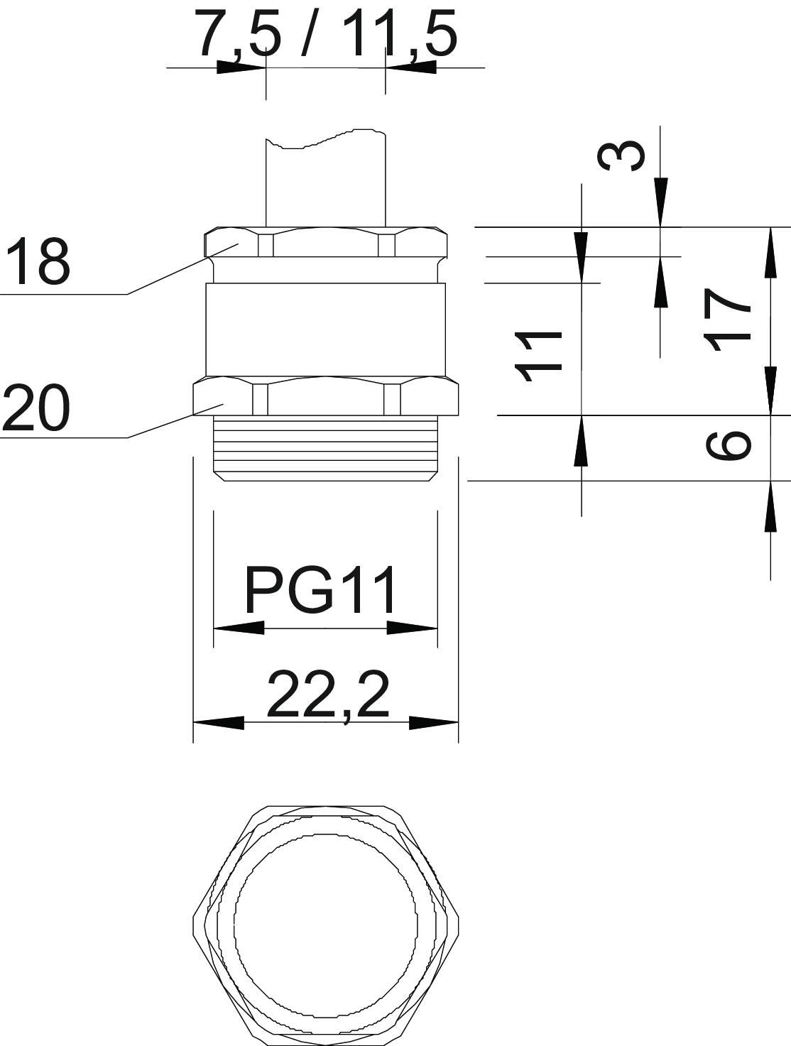 Descrição do produtoBucim com peça intermédia sextavada, modelo C4 conforme a DIN 46320, com rosca PG conforme a DIN 40430.