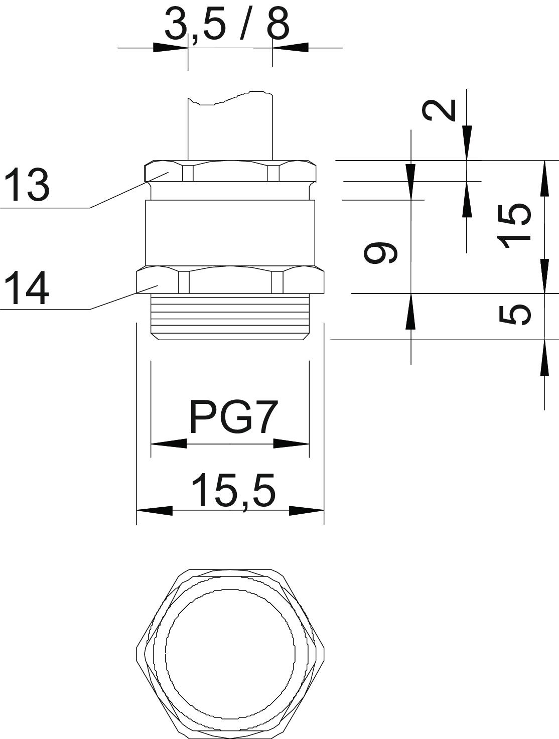 Área de vedação D mín. 3,5 mm Bucim para cabos planos não Capacidade de vedação D máx. 8 mm Com porca não Comprimento da rosca 5 mm Dimensão PG7 Grau de proteção IP54 Largura da chave 1 14 mm Largura da chave 2 13 mm Livre de halogéneos não Material Latão Medida E 15,5 mm Medida L 15 mm Medida L máx. 15 mm Medida L1 5 mm Medida L2 9 mm Medida L3 2 mm Para zonas potencialmente explosivas sem Passa cabos múltiplo não Pegada de CO2 (GWP) do berço ao portão 0,0308 kg CO2e / 1 Peça Possibilidade de alívio de tensão não Potegido contra explosões não Proteção contra flexão não Reforçado a fibra de vidro não Resistente não Rosca Pg 7 Superfície niquelado Tipo de rosca PG Tipo de vedação anel de vedação recortável - Todos os tipos