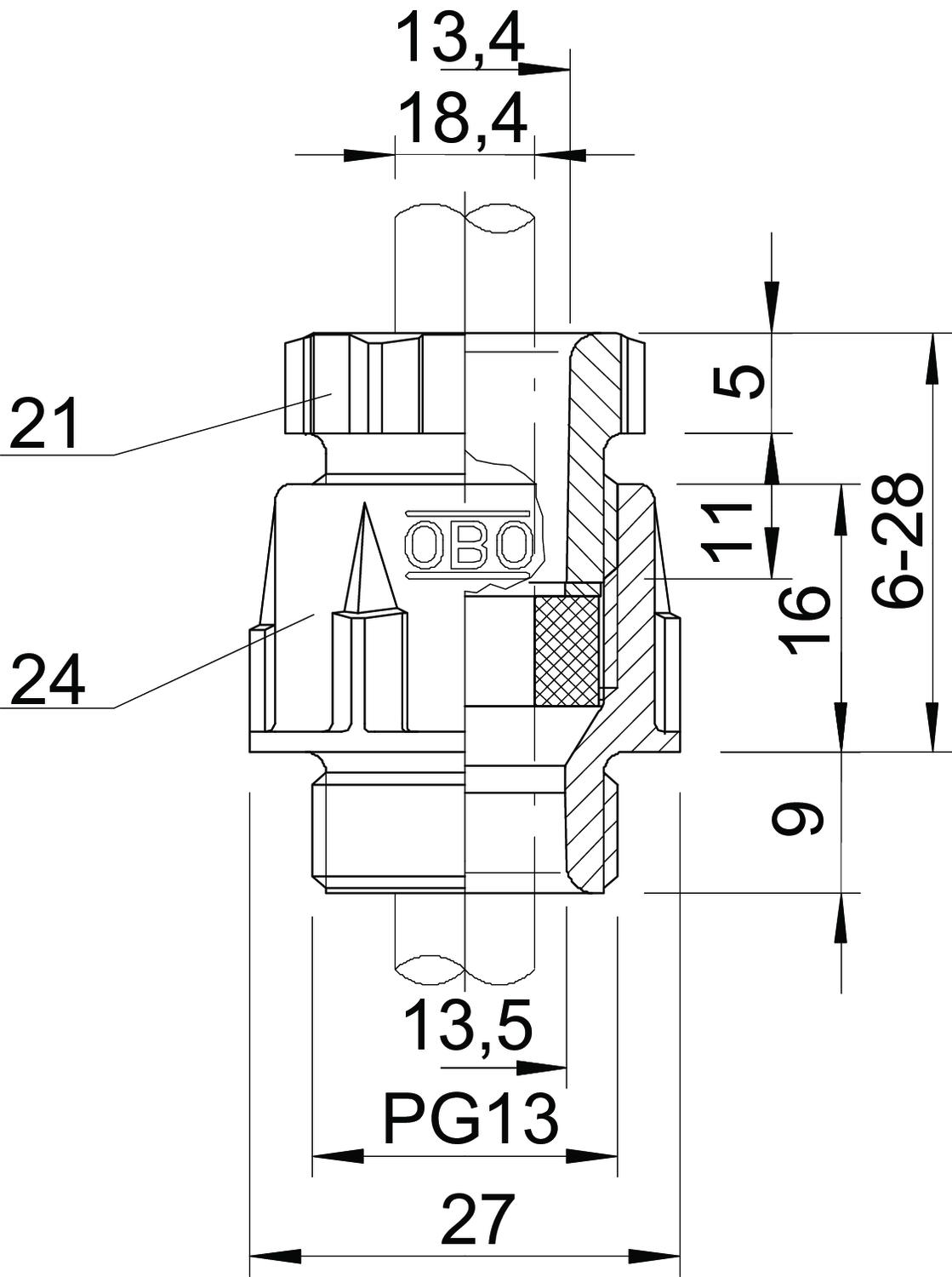 Descrição do produtoBucins standard, formato A de acordo com a DIN 46320 com anel de vedação simples NR/SBR, com rosca PG conforme a DIN 40430