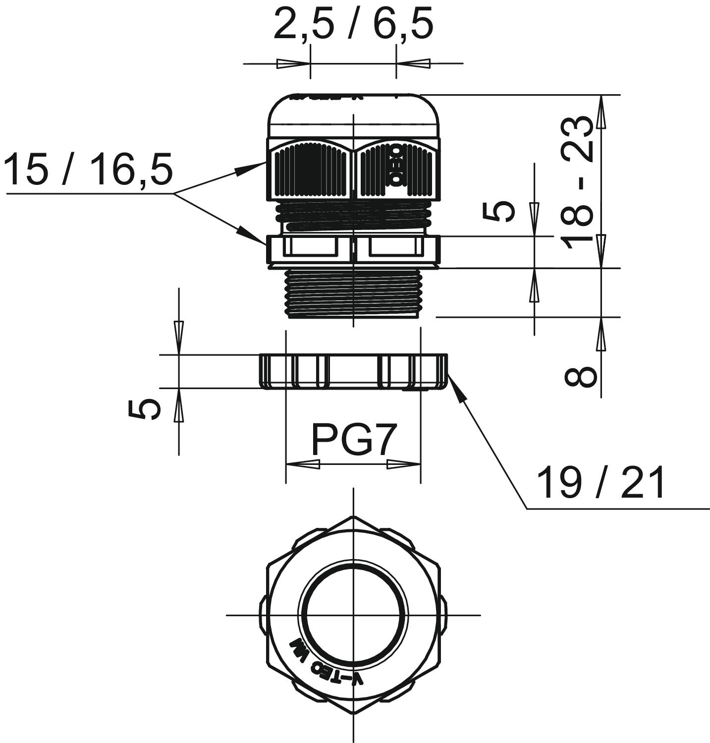 Área de vedação D mín. 2,5 mm Bucim para cabos planos não Bucim separável não Capacidade de vedação D máx. 6,5 mm Com porca sim Comprimento da rosca 8 mm Cor cinzento claro; RAL 7035 Dimensão PG7 Gama de temperaturas de aplicação máx. 65 °C Gama de temperaturas de aplicação mín. -20 °C Grau de proteção IP68 Largura da chave 1 15 mm Largura da chave 2 19 mm Livre de halogéneos sim Material Poliamida Medida E1 (mm) 16,5 mm Medida E2 21 mm Medida L máx. 23 mm Medida L mín. 18 mm Medida L1 8 mm Medida L2 5 mm Medida L3 5 mm para zona Ex com gás sem para zona Ex com poeira sem Para zonas potencialmente explosivas sem Passa cabos múltiplo não Passo de rosca 1,5 mm Pegada de CO2 (GWP) do berço ao portão 0,03 kg CO2e / 1 Peça Possibilidade de alívio de tensão sim Potegido contra explosões não Proteção contra flexão não Reforçado a fibra de vidro não Resistente não Rosca Pg 7 Sextavado Largura entre cantos 16,5 mm Tamanho nominal da rosca 7 Tipo de rosca PG Tipo de vedação Anel de vedação Versão reta - Todos os tipos