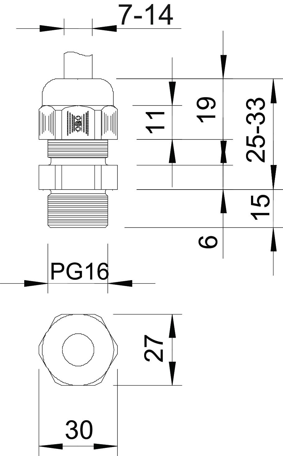 Área de vedação D mín. 7 mm Binário instável 3,67 Nm Bucim para cabos planos não Bucim separável não Capacidade de vedação D máx. 14 mm Com porca não Comprimento da rosca 15 mm Cor cinzento claro; RAL 7035 Dimensão PG16 Gama de temperaturas de aplicação máx. 65 °C Gama de temperaturas de aplicação mín. -20 °C Grau de proteção IP68 Largura da chave 27 Livre de halogéneos sim Material Poliamida Medida E 30 mm Medida L máx. 33 mm Medida L mín. 25 mm Medida L1 15 mm Medida L2 6 mm Medida L3 19 mm para zona Ex com gás sem para zona Ex com poeira sem Para zonas potencialmente explosivas sem Passa cabos múltiplo não Passo de rosca 1,5 mm Pegada de CO2 (GWP) do berço ao portão 0,0764 kg CO2e / 1 Peça Possibilidade de alívio de tensão sim Potegido contra explosões não Proteção contra flexão não Reforçado a fibra de vidro não Resistente não Rosca Pg 16 Sextavado Largura entre cantos 30 mm Tamanho nominal da rosca 16 Tipo de rosca PG Tipo de vedação Anel de vedação Versão reta - Todos os tipos