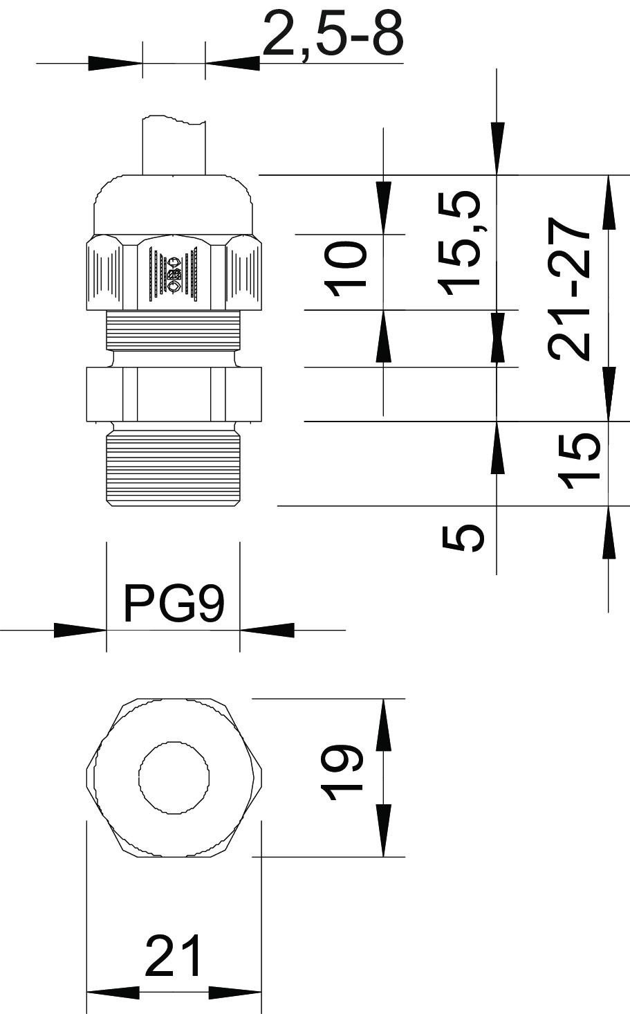 Área de vedação D mín. 2,5 mm Binário instável 2,5 Nm Bucim para cabos planos não Bucim separável não Capacidade de vedação D máx. 8 mm Com porca não Comprimento da rosca 15 mm Cor cinzento claro; RAL 7035 Dimensão PG9 Gama de temperaturas de aplicação máx. 65 °C Gama de temperaturas de aplicação mín. -20 °C Grau de proteção IP68 Largura da chave 19 Livre de halogéneos sim Material Poliamida Medida E 21 mm Medida L máx. 27 mm Medida L mín. 21 mm Medida L1 15 mm Medida L2 5 mm Medida L3 15,5 mm para zona Ex com gás sem para zona Ex com poeira sem Para zonas potencialmente explosivas sem Passa cabos múltiplo não Passo de rosca 1,5 mm Pegada de CO2 (GWP) do berço ao portão 0,0431 kg CO2e / 1 Peça Possibilidade de alívio de tensão sim Potegido contra explosões não Proteção contra flexão não Reforçado a fibra de vidro não Resistente não Rosca Pg 9 Sextavado Largura entre cantos 21 mm Tamanho nominal da rosca 9 Tipo de rosca PG Tipo de vedação Anel de vedação Versão reta - Todos os tipos