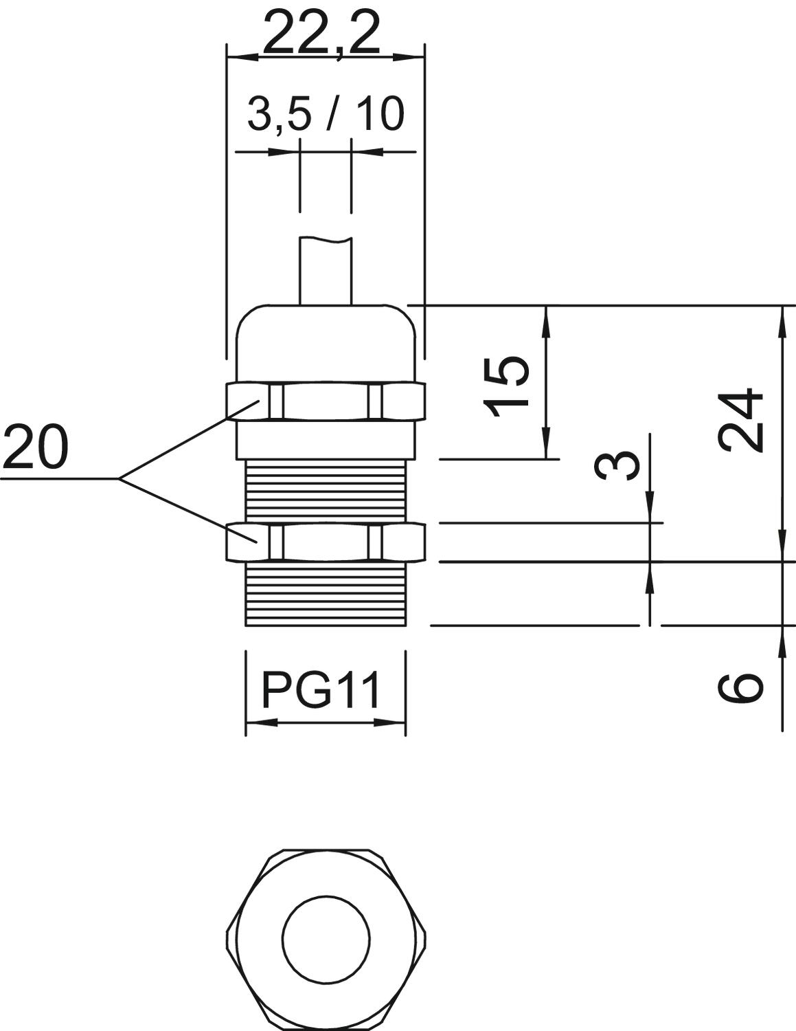 Área de vedação D mín. 3,5 mm Bucim para cabos planos não Bucim separável não Capacidade de vedação D máx. 10 mm Com porca não Comprimento da rosca 6 mm Dimensão PG11 Gama de temperaturas de aplicação máx. 100 °C Gama de temperaturas de aplicação mín. -20 °C Grau de proteção IP68 Largura da chave 20 Livre de halogéneos não Material Latão Medida E 22,2 mm Medida L máx. 24 mm Medida L1 6 mm Medida L2 3 mm Medida L3 15 mm para zona Ex com gás sem para zona Ex com poeira sem Para zonas potencialmente explosivas sem Passa cabos múltiplo não Pegada de CO2 (GWP) do berço ao portão 0,0934 kg CO2e / 1 Peça Possibilidade de alívio de tensão sim Potegido contra explosões não Proteção contra flexão não Reforçado a fibra de vidro não Resistente não Rosca Pg 11 Superfície niquelado Tamanho nominal da rosca 11 Tipo de rosca PG Tipo de vedação Anel de vedação Versão reta - Todos os tipos