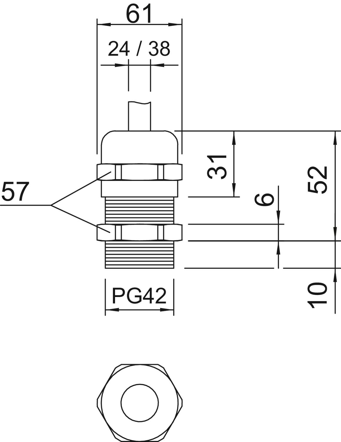 Área de vedação D mín. 24 mm Bucim para cabos planos não Bucim separável não Capacidade de vedação D máx. 38 mm Com porca não Comprimento da rosca 10 mm Dimensão PG42 Gama de temperaturas de aplicação máx. 100 °C Gama de temperaturas de aplicação mín. -20 °C Grau de proteção IP68 Largura da chave 57 Livre de halogéneos não Material Latão Medida E 61 mm Medida L máx. 52 mm Medida L1 10 mm Medida L2 6 mm Medida L3 31 mm para zona Ex com gás sem para zona Ex com poeira sem Para zonas potencialmente explosivas sem Passa cabos múltiplo não Pegada de CO2 (GWP) do berço ao portão 0,8629 kg CO2e / 1 Peça Possibilidade de alívio de tensão sim Potegido contra explosões não Proteção contra flexão não Reforçado a fibra de vidro não Resistente não Rosca Pg 42 Superfície niquelado Tamanho nominal da rosca 42 Tipo de rosca PG Tipo de vedação Anel de vedação Versão reta - Todos os tipos