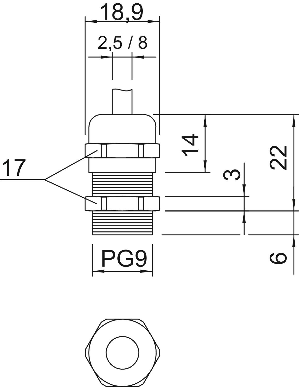 Comprimento da rosca "normal", em conformidade com a DIN 46320.