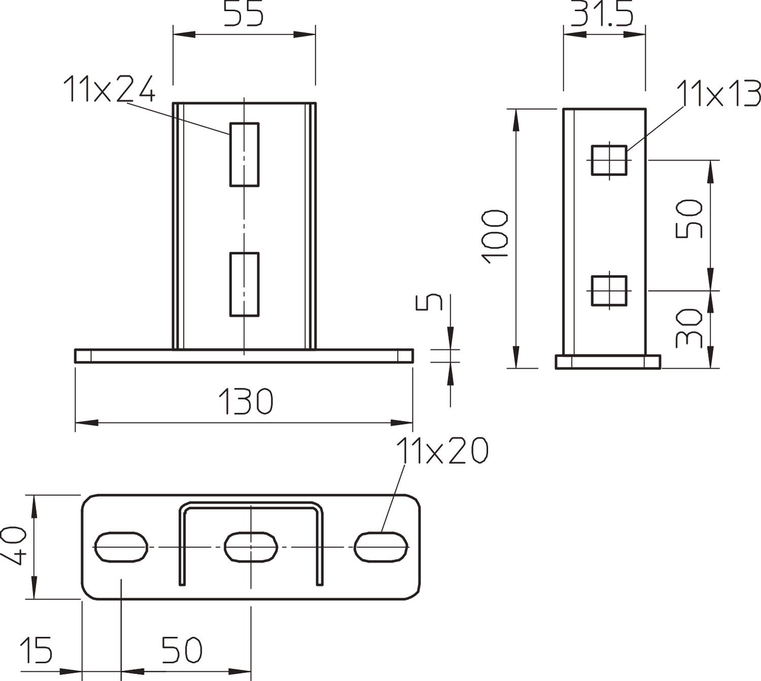 A placa superior pode ser montada em perfis em U Tipo US 3. Inclui o respectivo material de fixação.