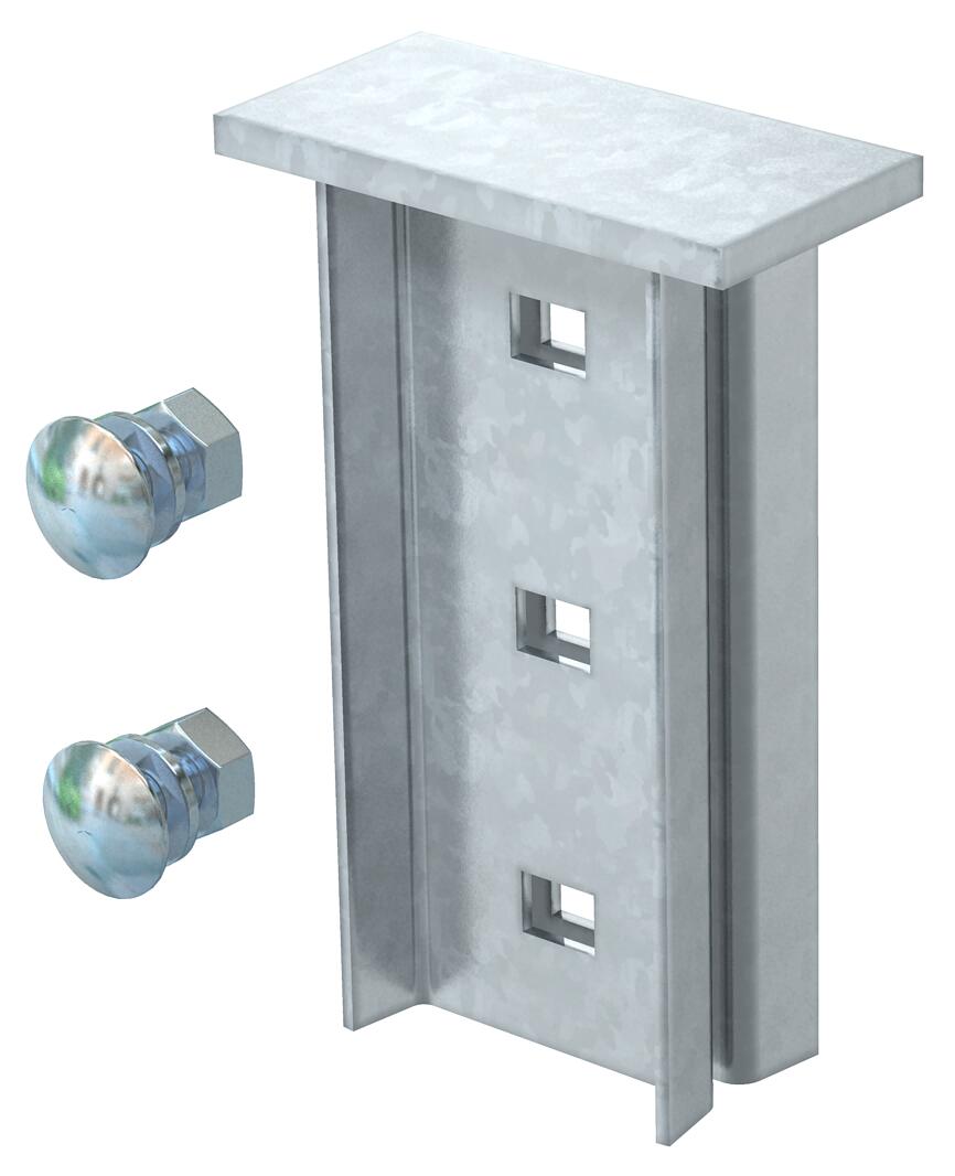 A cabeça de pendural pode ser montada em perfil IS 8. A cabeça do pendural é fixa no perfil com dois parafusos FRS M10X25, encomendados separadamente.