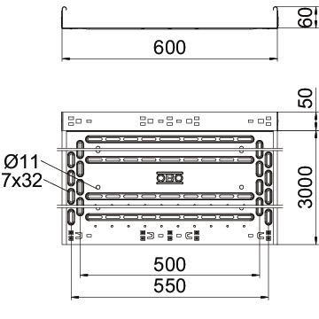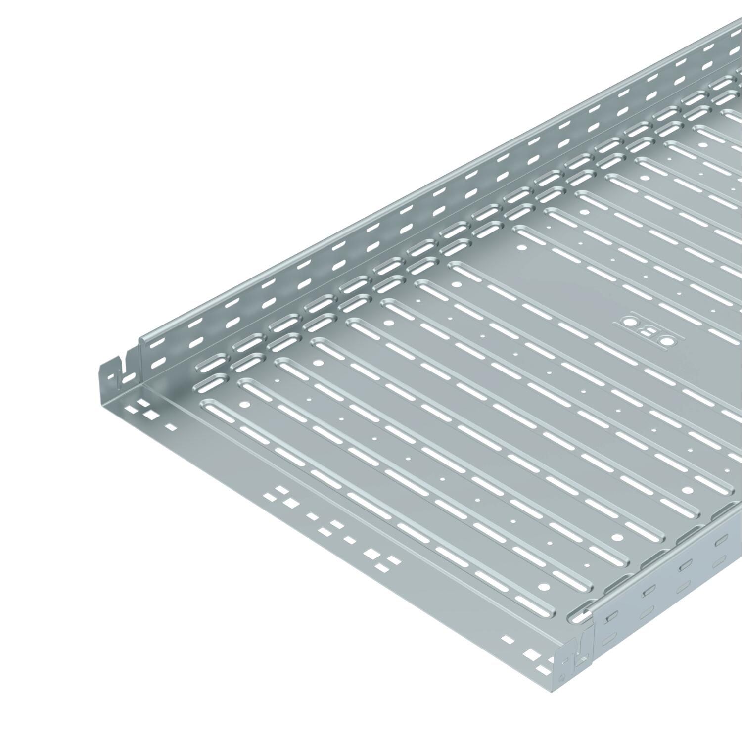 Descrição do produtoCable tray made from CO2-reduced steel, with integrated quick-fastening system. Usable length 3,000 mm. With continuous side perforation of 7 x 20 mm for the installation of connection and mounting components. 11 mm perforation in the base for direct threaded rod susptension