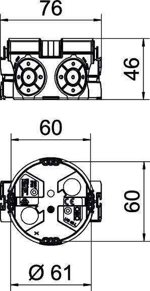 Descrição do produtoCaixa de aparelhagem de encastrar com entradas de membrana herméticas, para utilização em alvenaria com uma profundidade de instalação de pelo menos 46 mm.