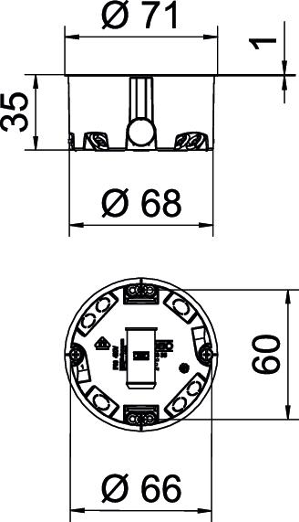 Descrição do produtoCaixa de aparelhagempara utilização em paredes ocas com uma profundidade de instalação de pelo menos 35 mm e uma espessura de placa de 5 - 28 mm.