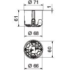 Descrição do produtoCaixa de aparelhagem com entradas de membrana herméticas, para utilização em paredes ocas com uma profundidade de instalação de pelo menos 61 mm e uma espessura de placa de 5 - 40 mm.