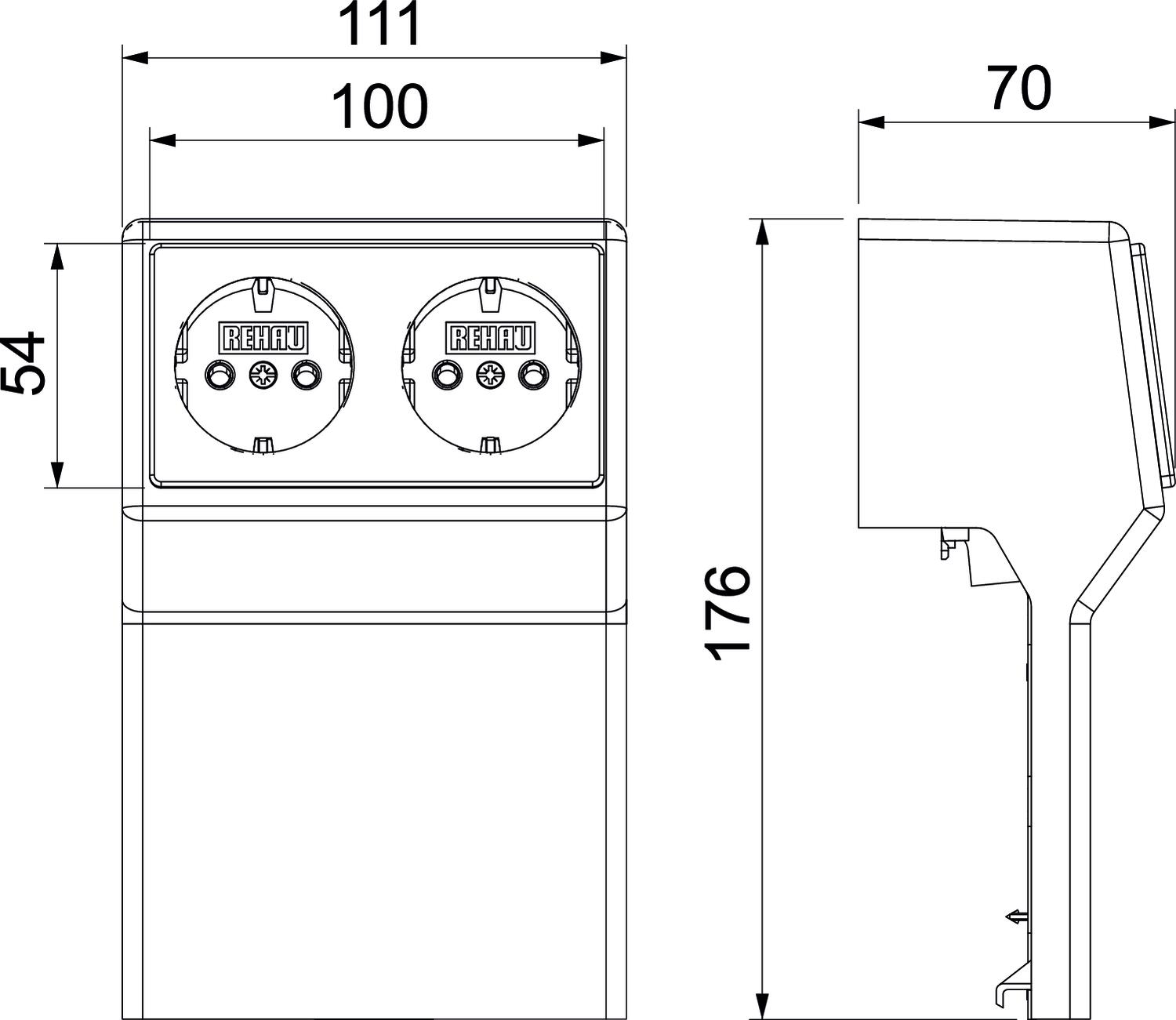 Descrição do produtoCaixa de aparelhagem com tomada Schuko dupla para o sistema de calhas Rauduo.