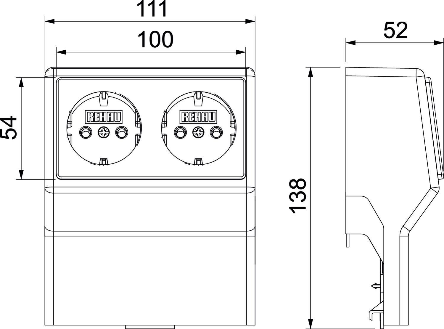 Descrição do produtoCaixa de aparelhagem com tomada Schuko dupla pré-montada para a calha de rodapés nas larguras de calha de 50 e 70 mm.