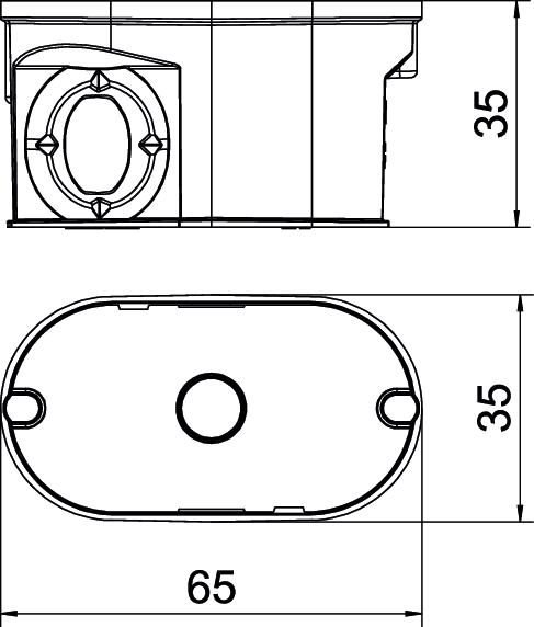 Descrição do produtoCaixa de aplique de encastrar para colocação de cabo monofásico. Formato oval, para utilização em alvenaria com uma profundidade de instalação de pelo menos 35 mm.