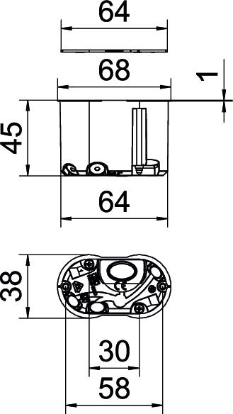Descrição do produtoCaixa de aplique, dupla, hermética para paredes ocas, para a montagem de iluminação na parede ou de altifalantes. Com tampa.