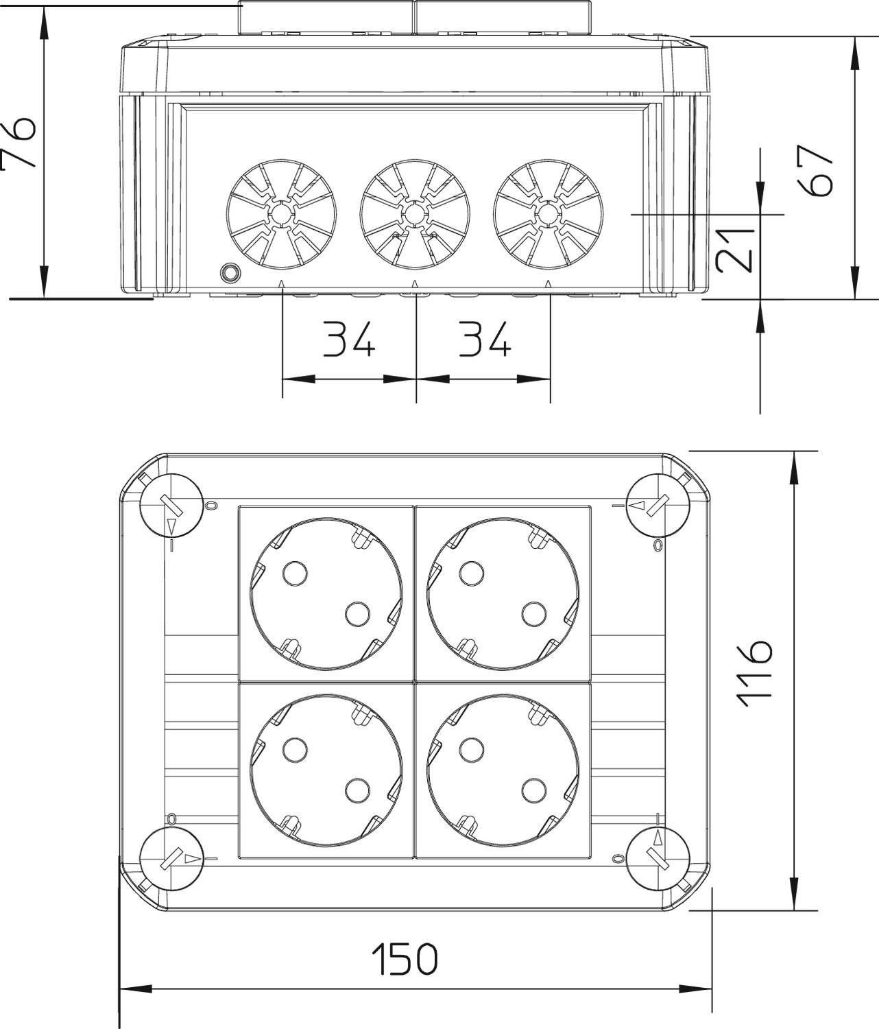 Caixa de derivação T 100 2 tomadas Modul 45 na tampa, 1 polo