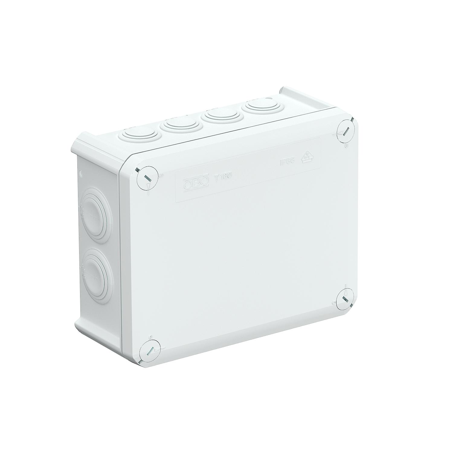 Descrição do produtoCaixa de derivação para conectar cabos em áreas interiores e áreas exteriores protegidas. Forma retangular com bucins cónicos nas laterais e entradas quebráveis na base. Adequado para a montagem na parede / teto e para a montagem em suportes para caixas de derivação. Com opção de fixação interna e montagem através de parafusos nos cantos. Tampa com fecho rápido, pode ser selada a chumbo. Fabricada em materiais resistentes aos raios UV e livres de halogéneo.