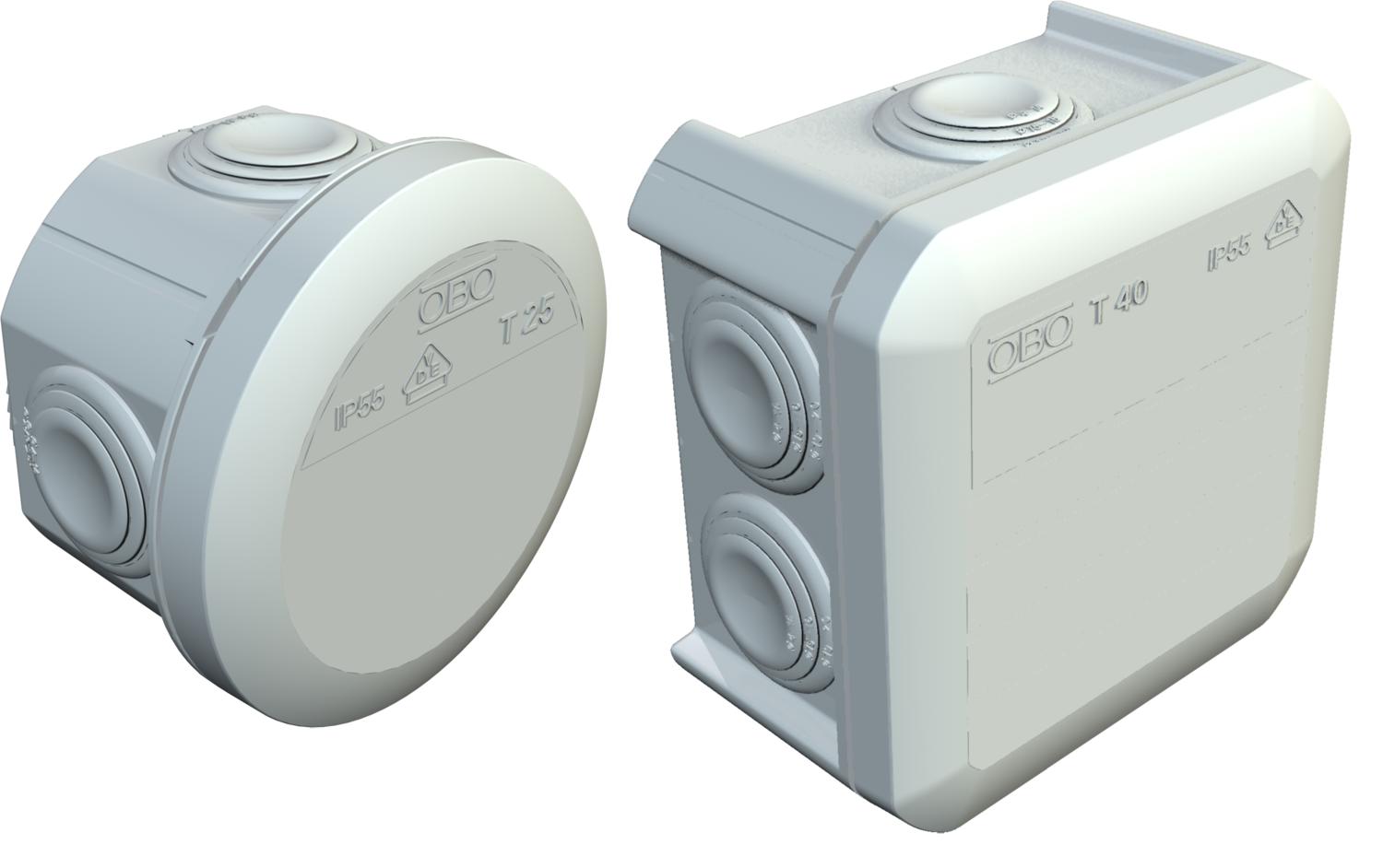 Caixa de derivação de acordo com a DIN EN 60670. Resistente ao fio incandescente segundo a DIN EN 60695-2-11, temperatura de ensaio 650 °C. Resistência ao impacto IK07 de acordo com a DIN EN 50102.