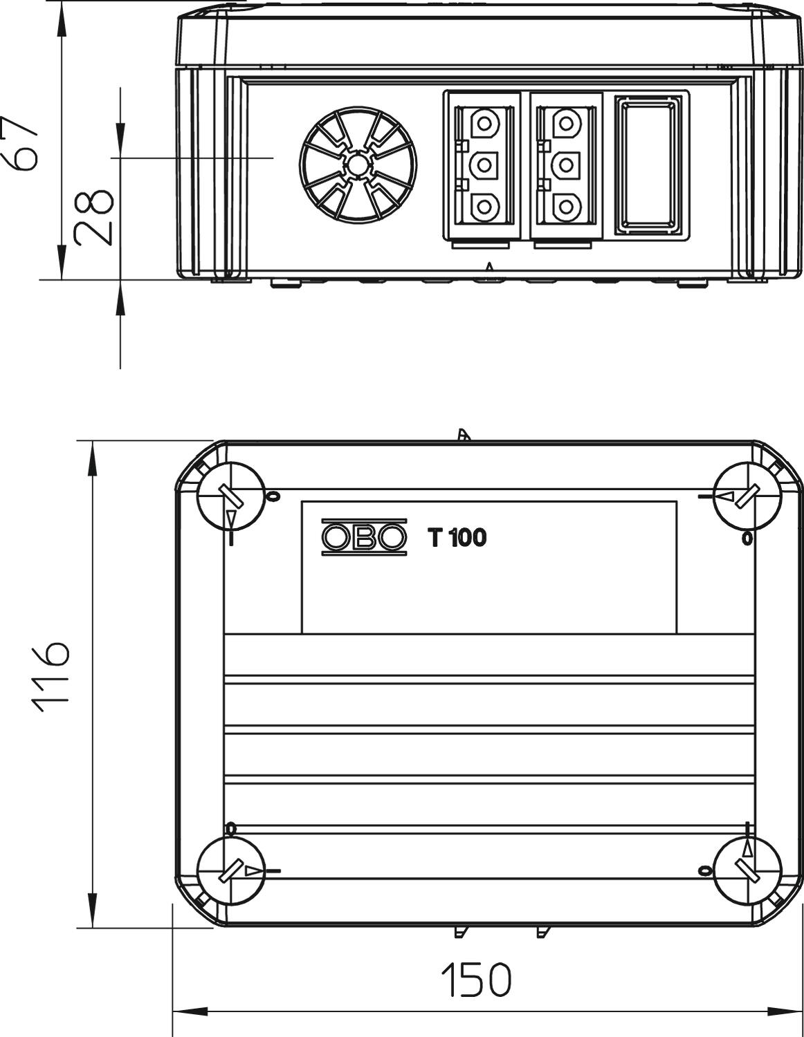 Agrupável sim Altura 67 mm Com blindagem não Com tampa sim Comprimento 150 mm Cor cinzento claro; RAL 7035 Dimensão 150x116x67 Dimensões internas 136x102x57 mm Entrada pela parte de trás sim Fixação da tampa aparafusado Forma retangular Funktionsgaranti sem Gama de temperaturas de aplicação máx. 60 °C Gama de temperaturas de aplicação mín. -5 °C Grau de proteção IP20 Largura 116 mm Livre de halogéneos sim Material Polipropileno Montagem Outros Número de entradas 4 para zona Ex com gás sem para zona Ex com poeira sem Para zonas potencialmente explosivas sem Pegada de CO2 (GWP) do berço ao portão 0,6146 kg CO2e / 1 Peça resistência ao fio incandescente conforme a VDE 0471/DIN 695 Parte 2-1, temperatura de ensaio 650 °C Resistente a intempéries não Secção transversal nominal mín. 2,5 mm² Selável sim Tampa não transparente Tampa transparente não Tensão de isolamento do dimensionamento Ui 500 V Tensões nominais 500 V Tipo de entrada Entradas de alívio de tensão para perfuração direta para diâmetros de cabo de 7-21 mm Tipo de montagem Montagem na parede/teto Tipo de versão da caixa Marcação Versão verificada quanto a explosões não - Todos os tipos