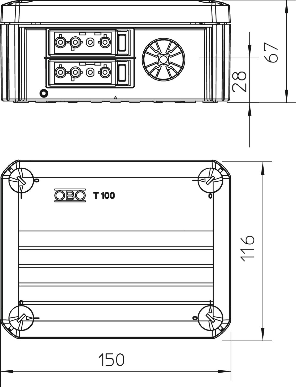 Agrupável sim Altura 67 mm Com blindagem não Com tampa sim Comprimento 150 mm Cor cinzento claro; RAL 7035 Dimensão 150x116x67 Dimensões internas 136x102x57 mm Entrada pela parte de trás sim Fixação da tampa aparafusado Forma retangular Funktionsgaranti sem Gama de temperaturas de aplicação máx. 60 °C Gama de temperaturas de aplicação mín. -5 °C Grau de proteção IP20 Largura 116 mm Livre de halogéneos sim Material Polipropileno Montagem Outros Número de entradas 4 para zona Ex com gás sem para zona Ex com poeira sem Para zonas potencialmente explosivas sem Pegada de CO2 (GWP) do berço ao portão 0,6862 kg CO2e / 1 Peça resistência ao fio incandescente conforme a VDE 0471/DIN 695 Parte 2-1, temperatura de ensaio 650 °C Resistente a intempéries não Secção transversal nominal mín. 2,5 mm² Selável sim Tampa não transparente Tampa transparente não Tensão de isolamento do dimensionamento Ui 500 V Tensões nominais 500 V Tipo de entrada Entradas de alívio de tensão para perfuração direta para diâmetros de cabo de 7-21 mm Tipo de montagem Montagem na parede/teto Tipo de versão da caixa Marcação Versão verificada quanto a explosões não - Todos os tipos