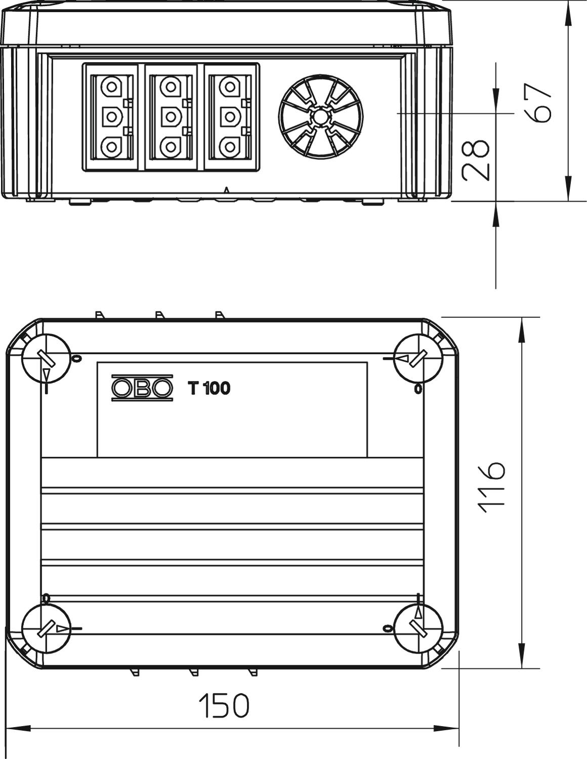 Descrição do produtoCaixa de derivação com tomadas Wieland 2s3p para conectar cabos e condutas em áreas interiores e áreas exteriores protegidas. Formato retangular com entradas quebráveis nas laterais e entradas quebráveis na base. Adequado para a montagem na parede / teto e para a montagem em suportes para caixas de derivação. Com opção de fixação interna e montagem através de parafusos nos cantos. Tampa com fecho rápido, pode ser selada a chumbo. Fabricada em materiais resistentes aos raios UV e livres de halogéneo.