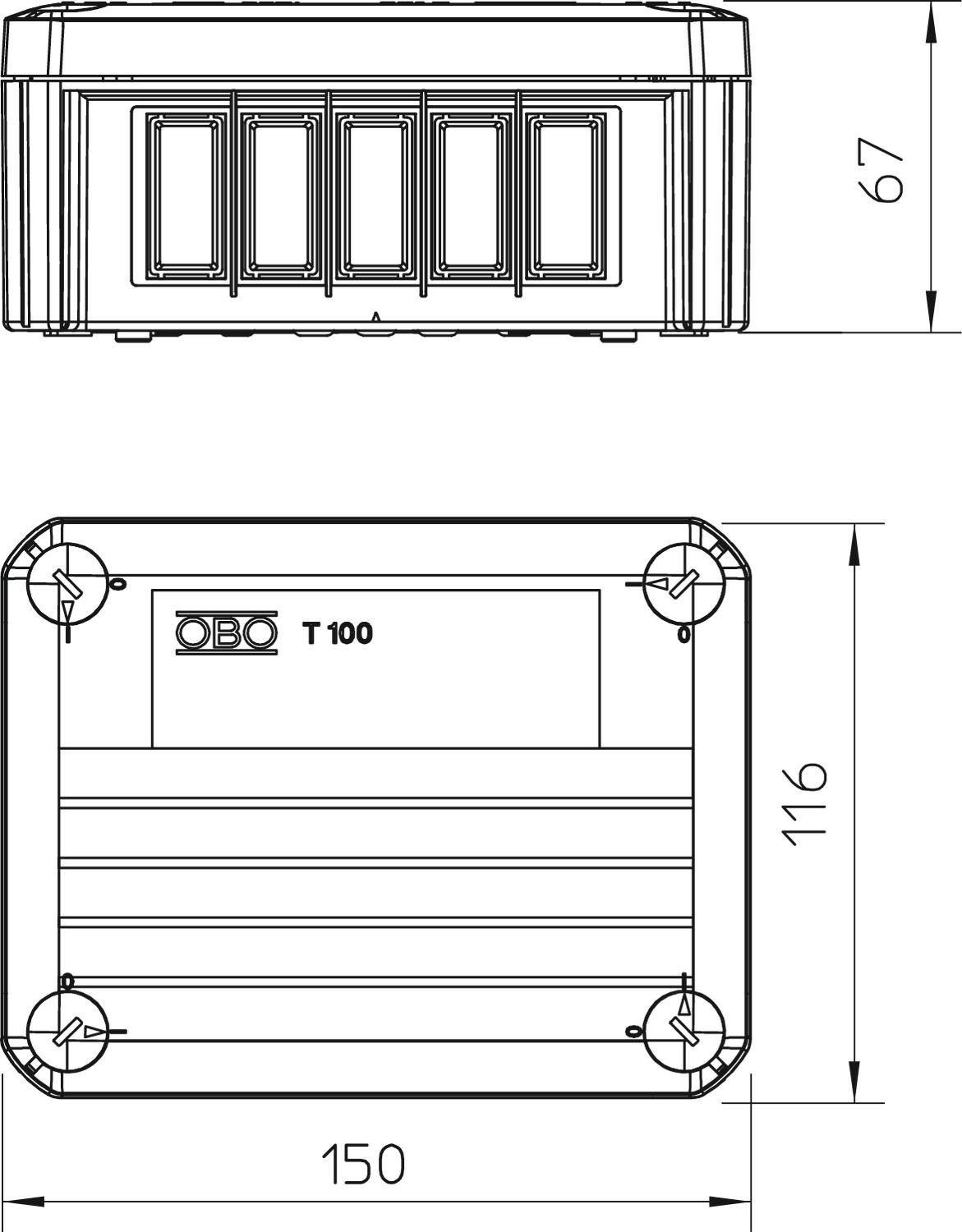 Agrupável sim Altura 67 mm Com blindagem não Com tampa sim Comprimento 150 mm Cor cinzento claro; RAL 7035 Dimensão 150x116x67 Dimensões internas 136x102x57 mm Entrada pela parte de trás sim Fixação da tampa aparafusado Forma retangular Funktionsgaranti sem Gama de temperaturas de aplicação máx. 60 °C Gama de temperaturas de aplicação mín. -5 °C Grau de proteção IP20 Largura 116 mm Livre de halogéneos sim Material Polipropileno Montagem Outros Número de entradas 4 para zona Ex com gás sem para zona Ex com poeira sem Para zonas potencialmente explosivas sem Pegada de CO2 (GWP) do berço ao portão 0,5784 kg CO2e / 1 Peça resistência ao fio incandescente conforme a VDE 0471/DIN 695 Parte 2-1, temperatura de ensaio 650 °C Resistente a intempéries não Secção transversal nominal mín. 2,5 mm² Selável sim Tampa não transparente Tampa transparente não Tensão de isolamento do dimensionamento Ui 500 V Tensões nominais 500 V Tipo de entrada Entradas de alívio de tensão para perfuração direta para diâmetros de cabo de 7-21 mm Tipo de montagem Montagem na parede/teto Tipo de versão da caixa Marcação Versão verificada quanto a explosões não - Todos os tipos