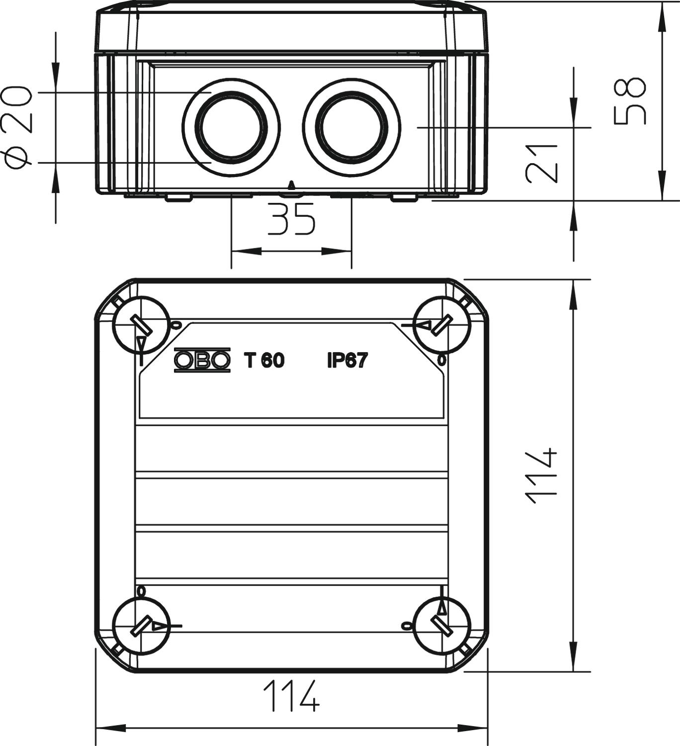 Descrição do produtoCaixa de derivação com régua de bornes para conectar cabos em áreas interiores e áreas exteriores protegidas. Forma quadrada com entradas quebráveis nas laterais e entradas quebráveis na base. Adequado para a montagem na parede / teto e para a montagem em suportes para caixas de derivação. Com opção de fixação interna e montagem através de parafusos nos cantos. Com tampa de aperto fixa. Fabricada em materiais resistentes aos raios UV e livres de halogéneo. Caixa de derivação de acordo com a DIN EN 60670. Resistente ao fio incandescente segundo a DIN EN 60695-2-11, temperatura de ensaio 650 °C. Resistência ao impacto IK07 de acordo com a DIN EN 50102. Classe de proteção IP67 possível quando montada através das cúpulas de canto.