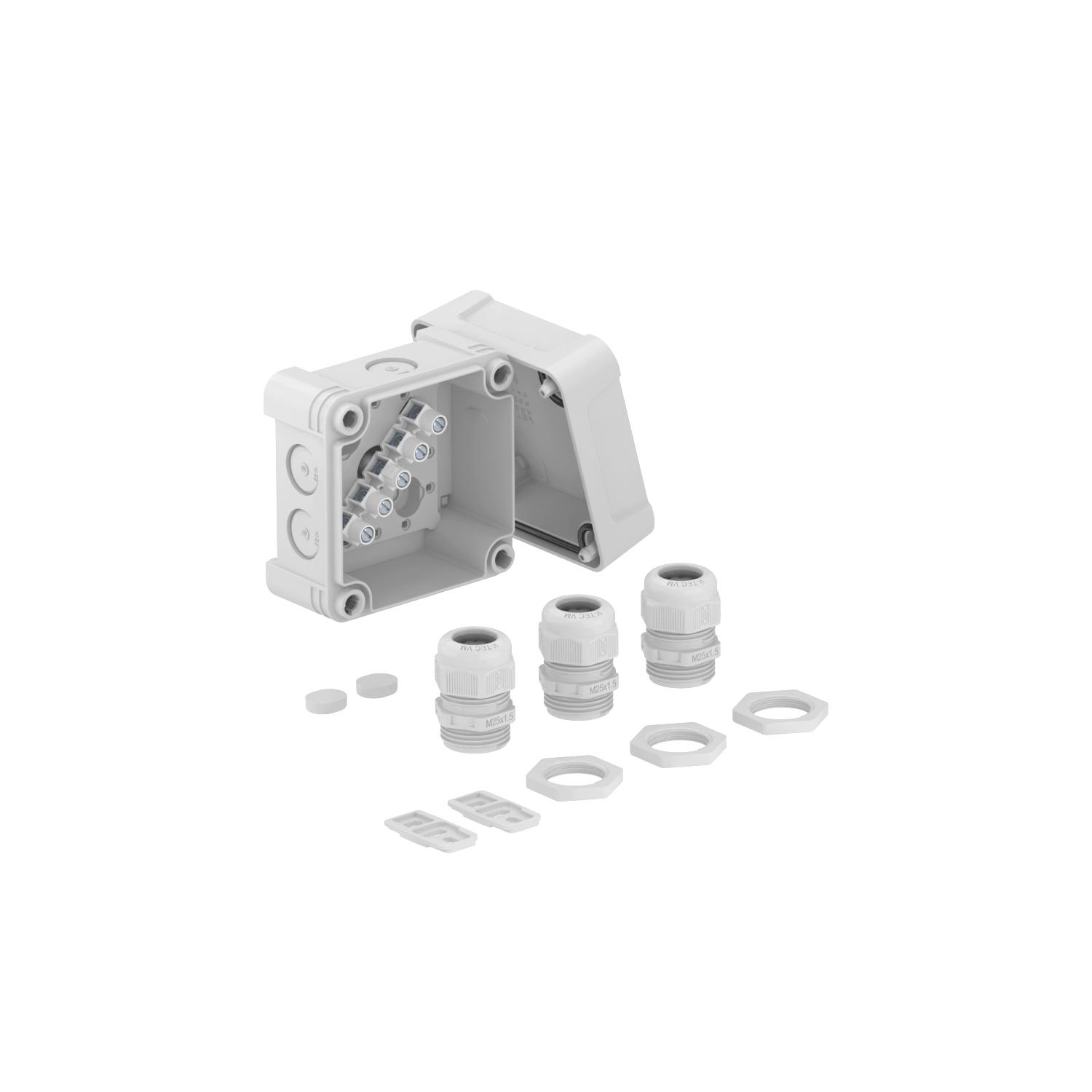 Além disso, inclui uma régua de bornes, três bucins V-TEC M20 e três porcas adequadas.