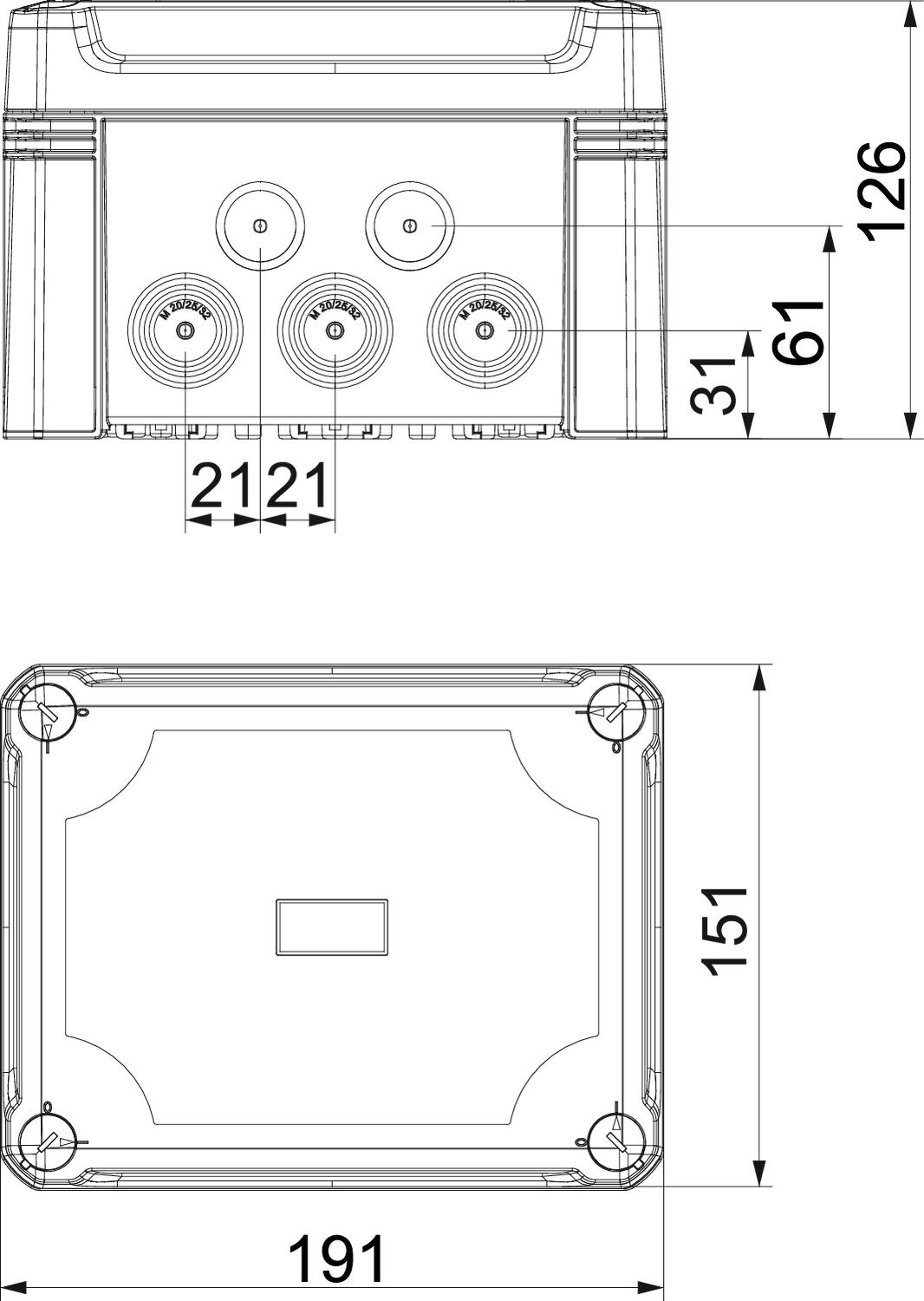 Descrição do produtoCaixa de derivação com régua de bornes para conectar cabos e tubos em áreas interiores e exteriores. Forma retangular com entradas quebráveis. Adequado para montagem na parede e teto com opção para fixação externa ou montagem através de parafusos nos cantos. Particularmente resistente ao impacto com IK09. Tampa com fecho rápido, pode ser selada a chumbo. Fabricada em materiais resistentes aos raios UV e livres de halogéneo.