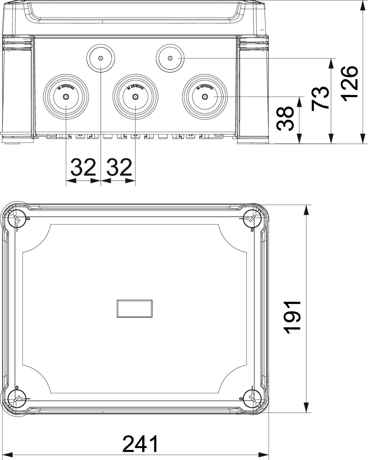 Descrição do produtoCaixa de derivação com calha DIN para conectar cabos e tubos em áreas interiores e exteriores. Forma retangular com entradas quebráveis. Adequado para montagem na parede e teto com opção para fixação externa ou montagem através de parafusos nos cantos. Particularmente resistente ao impacto com IK09. Tampa transparente com fecho rápido, pode ser selada a chumbo. Fabricada em materiais resistentes aos raios UV e livres de halogéneo.