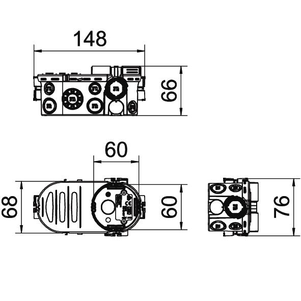Descrição do produtoCaixa de eletrónica de encastrar com espaço de ligação adicional, para utilização em alvenaria com uma profundidade de instalação de pelo menos 66 mm.