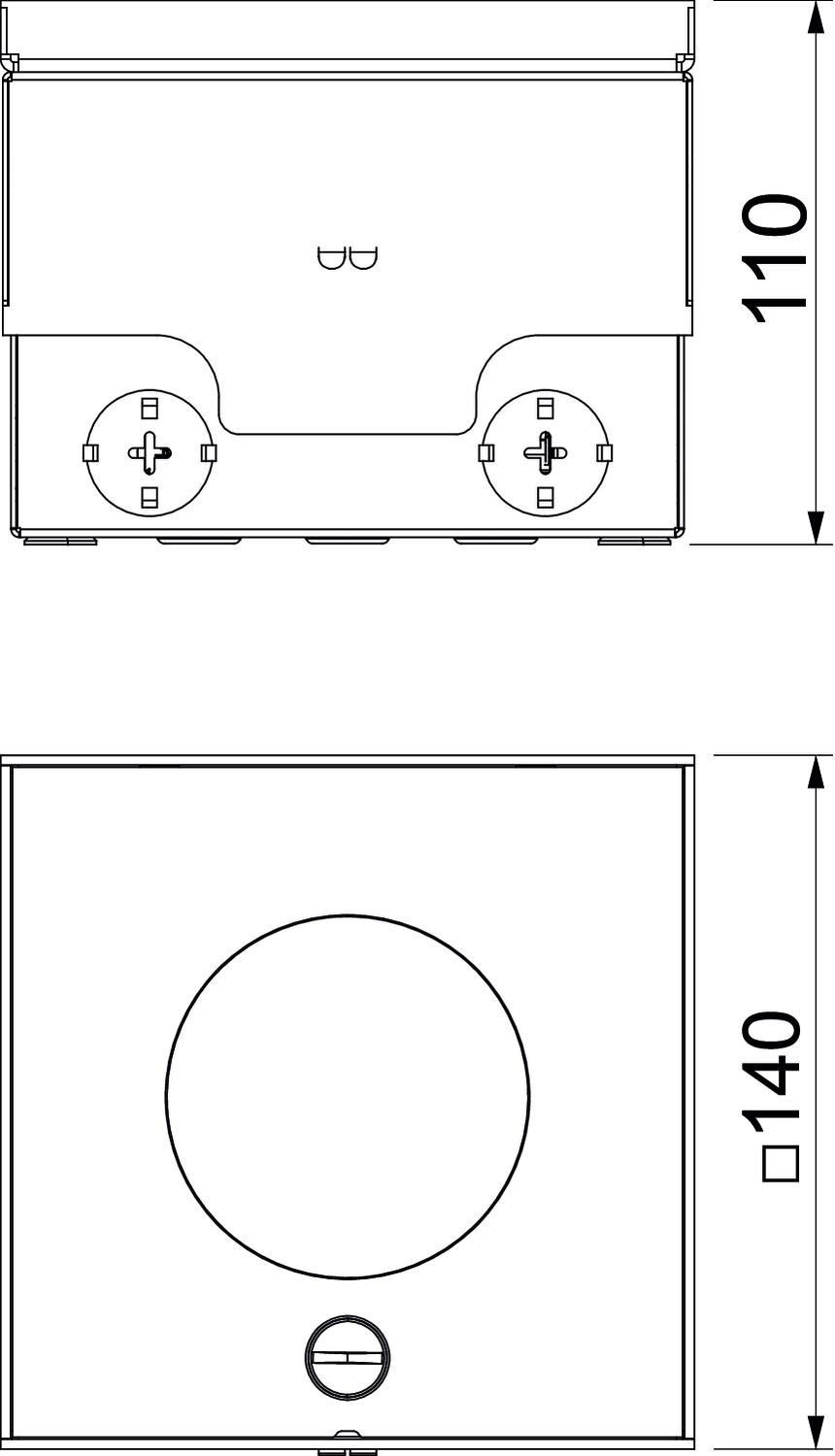 Descrição do produtoUnidade de instalação quadrada para aplicação em chão falso de betonilha de limpeza a seco e a húmido. Caixa com aberturas de entrada para tubos (M25). Tampa ajustável ao rebordo superior do revestimento do pavimento, através de 4 apoios de nivelamento. A profundidade mínima de montagem é de 95 mm, a amplitude de nivelamento + 20 mm.
