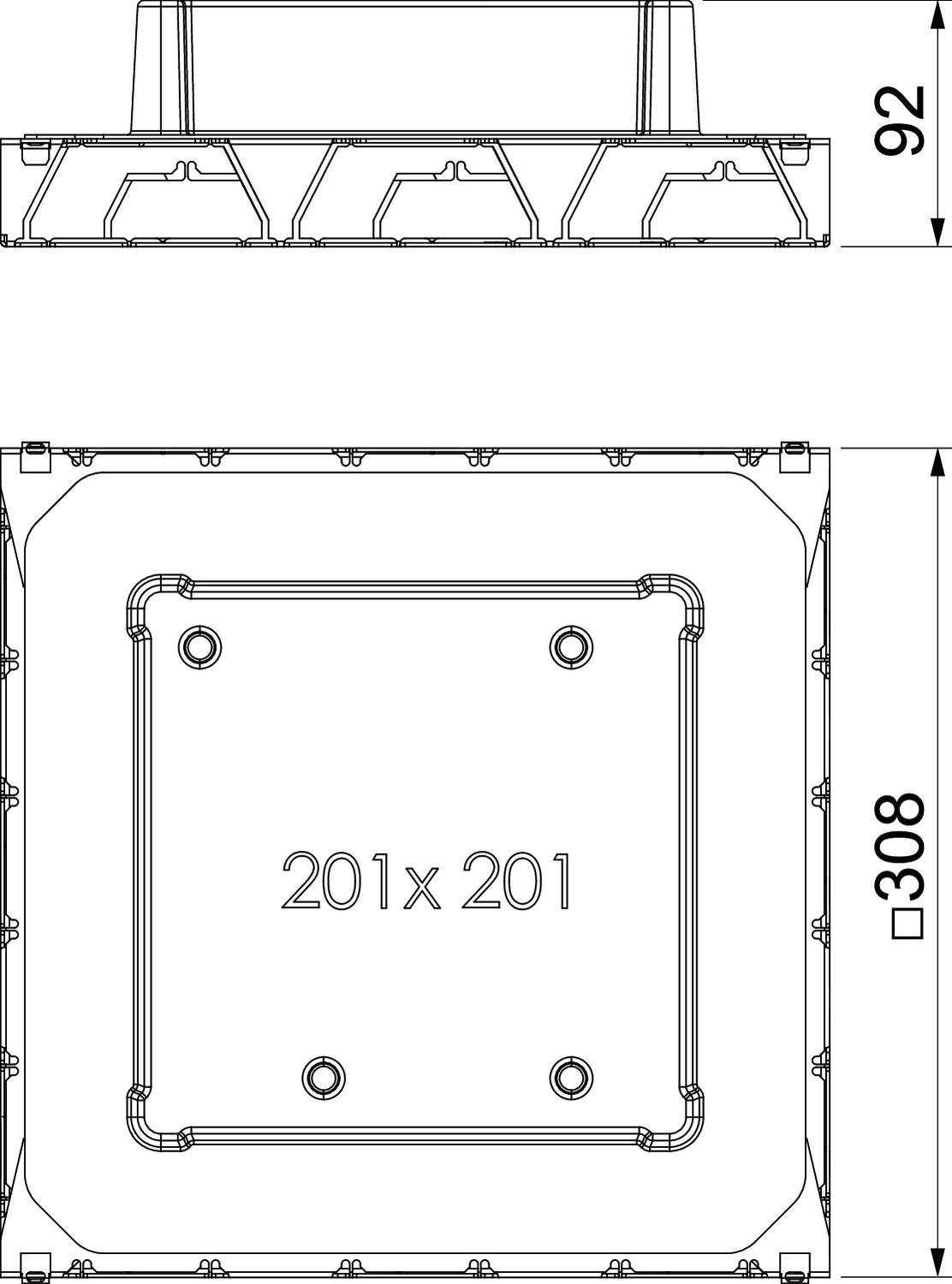 Descrição do produtoA caixa de pavimento com abertura de montagem fixa e constante de 201 x 201 mm, para uma tampa de tamanho 4. O material fornecido inclui uma cofragem através da qual é estabelecida a abertura de montagem. A caixa de pavimento está disposta sobre aberturas de montagem, por cada três calhas PVC de 1 via do tamanho 60 x 25 e 90 x 35 nos quatro lados. A caixa é adequada essencialmente para a aplicação em estruturas de piso com pavimento em cimento, com uma altura de instalação de até 90 mm.