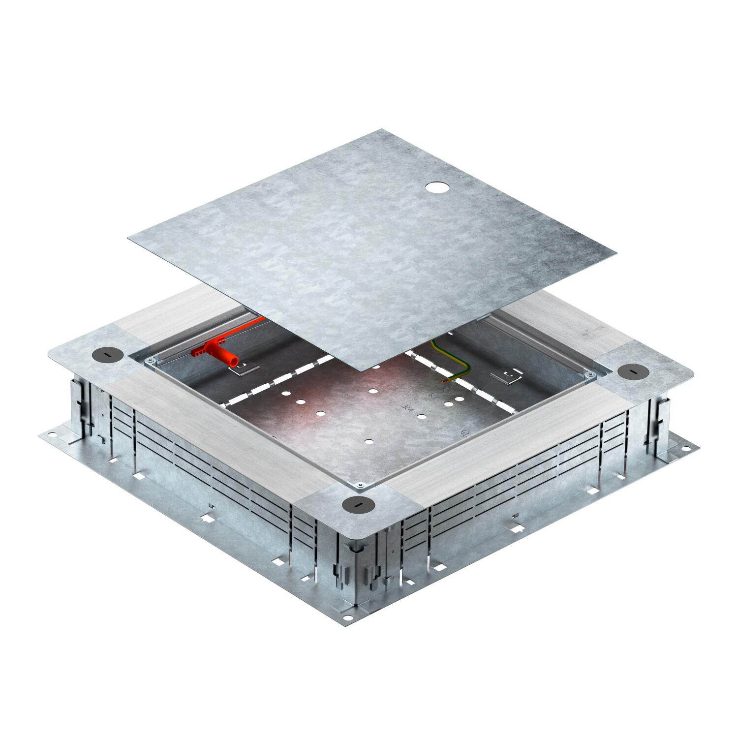 Descrição do produtoCaixa de pavimento para calhas de chão revestidas com betonilha, com paredes laterais de chapa de aço. Para a montagem de tampa em aro de redução (encomendar em separado). Pode ser continuamente nivelada até à altura da betonilha de 80 - 160 mm com o nivelamento rápido. A betonilha pode ser nivelada com a aresta de descarga da betonilha. Com opção de desacoplamento acústico após a colocação do pavimento e com acessórios do sistema também adequadas para aplicações em grandes cargas. Introdução dos cabos e condutores com a calha EÜK de 2 peças.