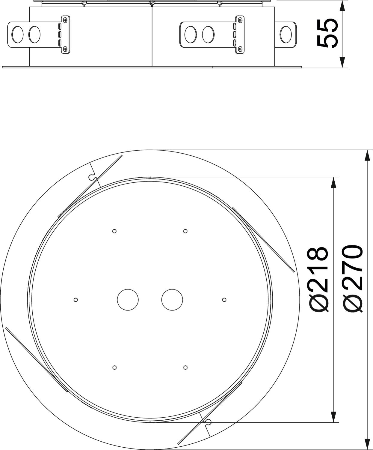 Altura 55 mm Altura máx. do pavimento 200 mm Altura mín. do pavimento 130 mm Dimensão Ø270x55 Material Aço Medida A 270 mm Medida a 218 mm Medida h 55 mm Pegada de CO2 (GWP) do berço ao portão 10,3425 kg CO2e / 1 Peça Superfície galvanizado pelo método Sendzimir Tamanho nominal para unidades de montagem de aparelhos R4 - Todos os tipos