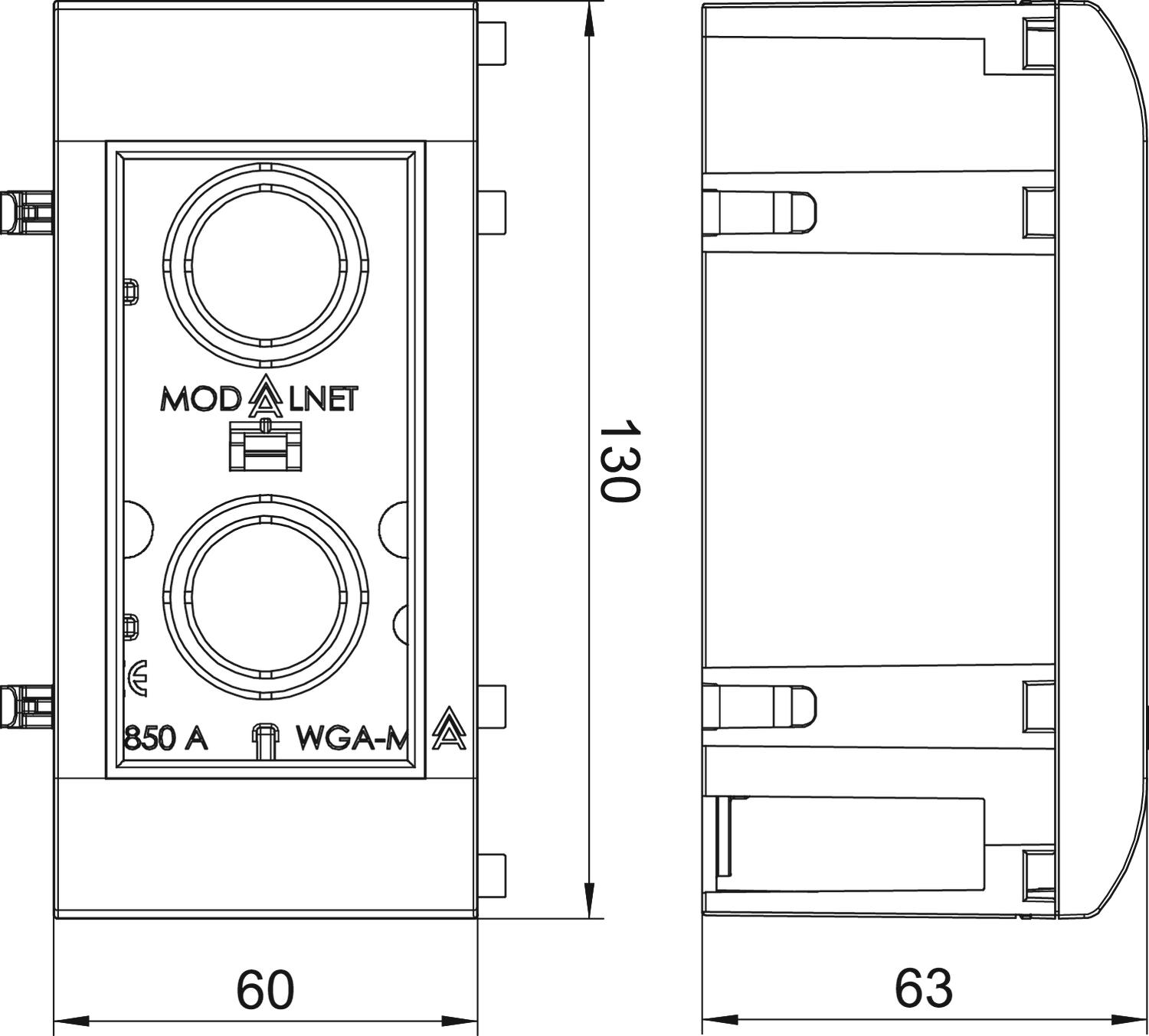 Descrição do produtoMódulo de expansão composto por caixa base e espelho para o alojamento de aparelhos Modul 45 numa largura de 2 módulos = 90 mm.